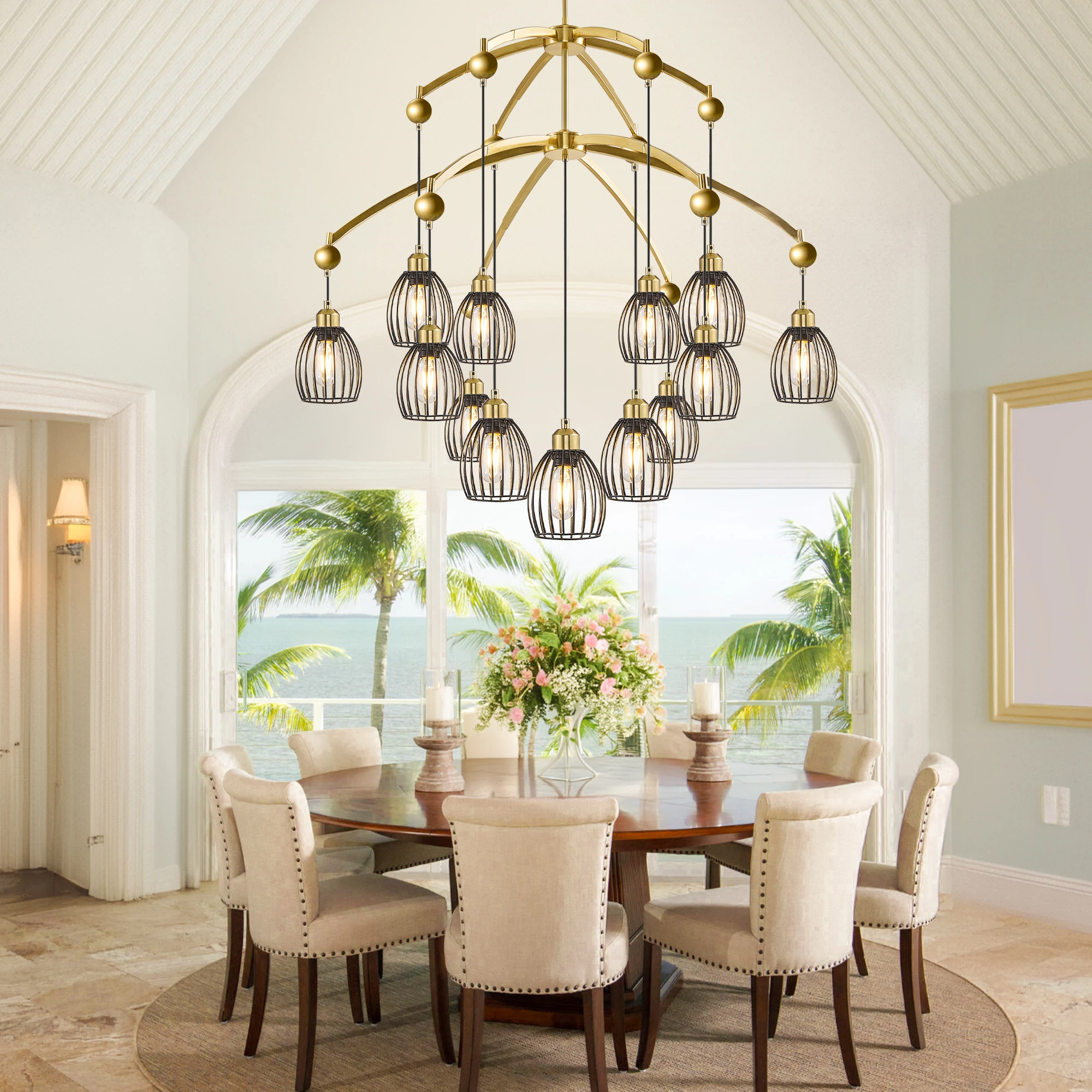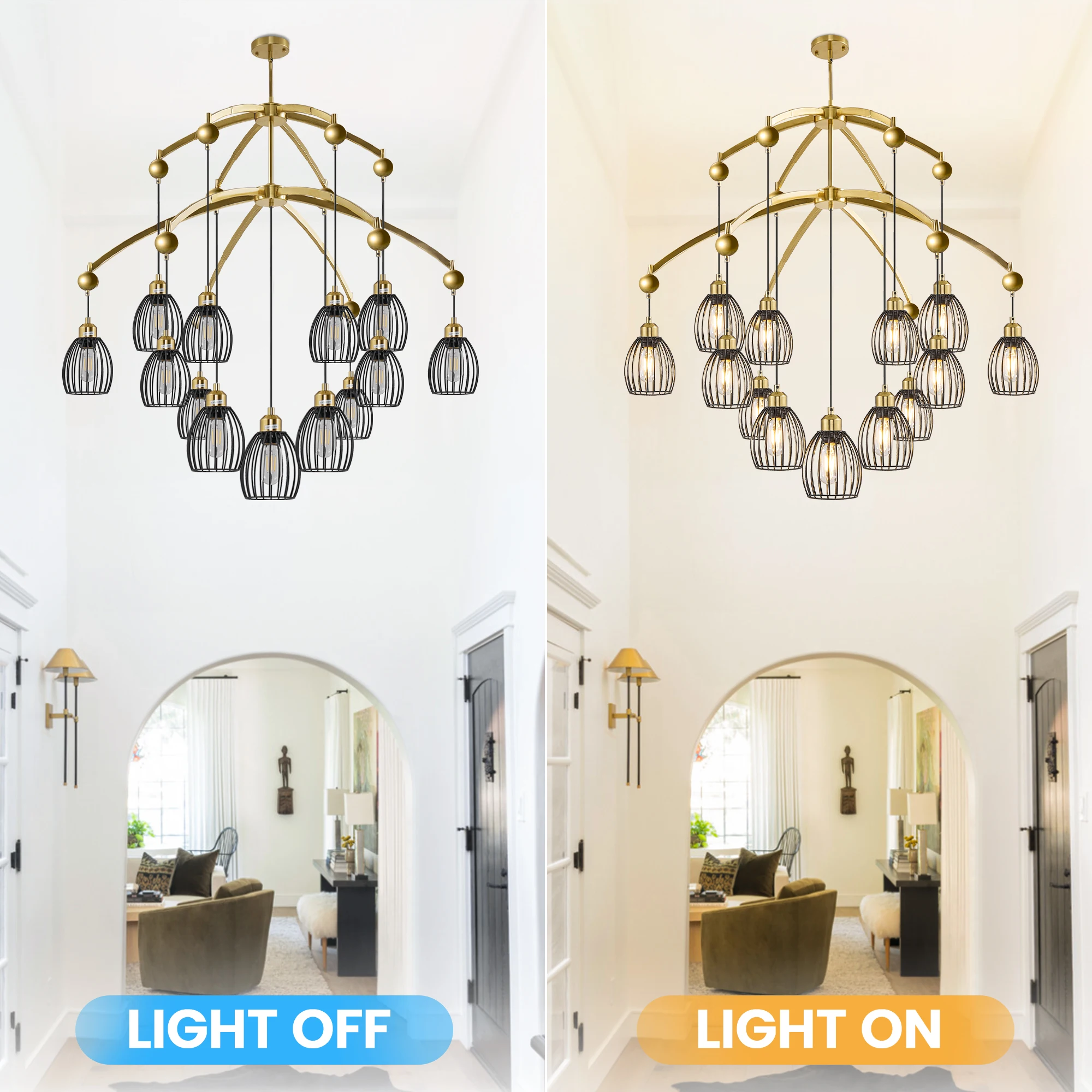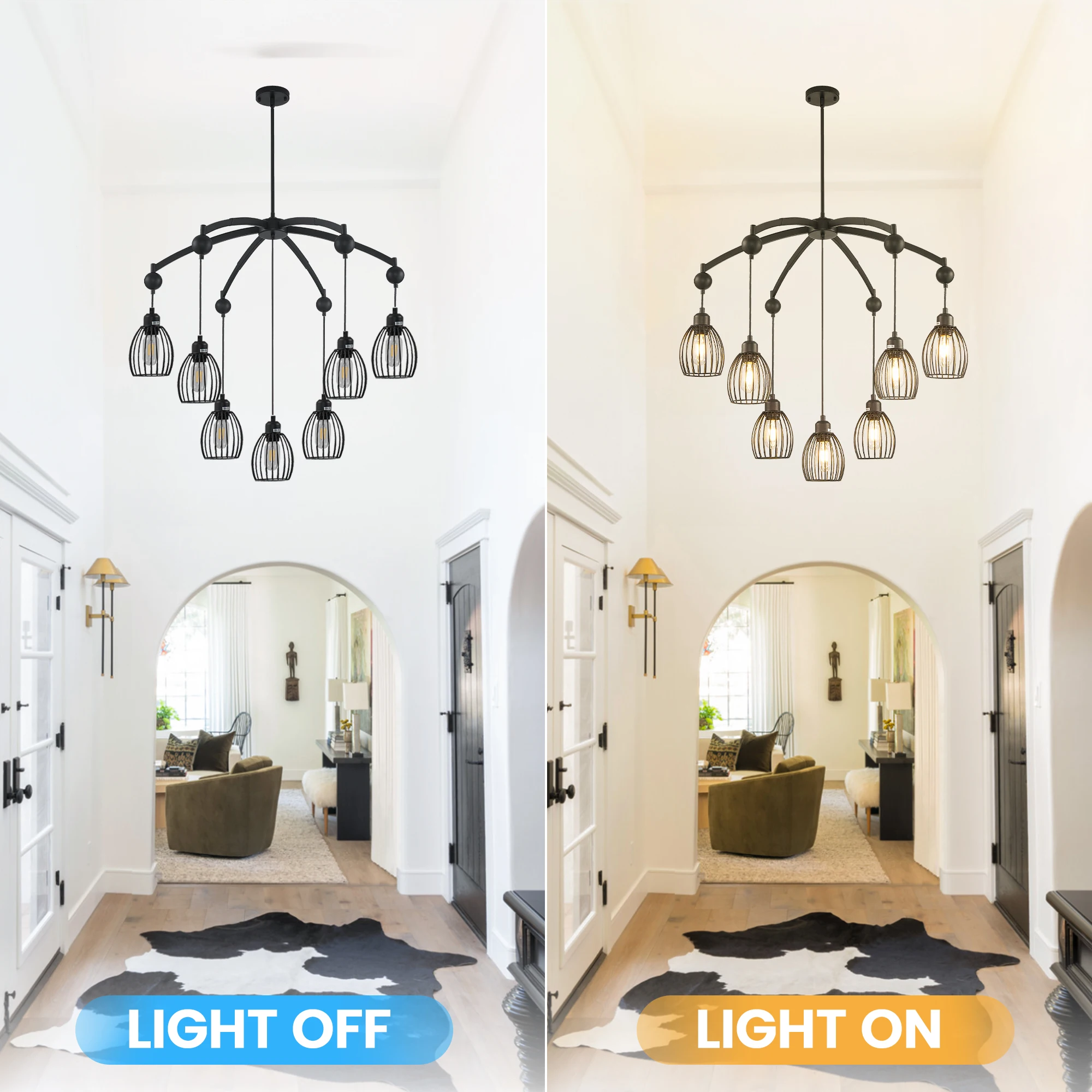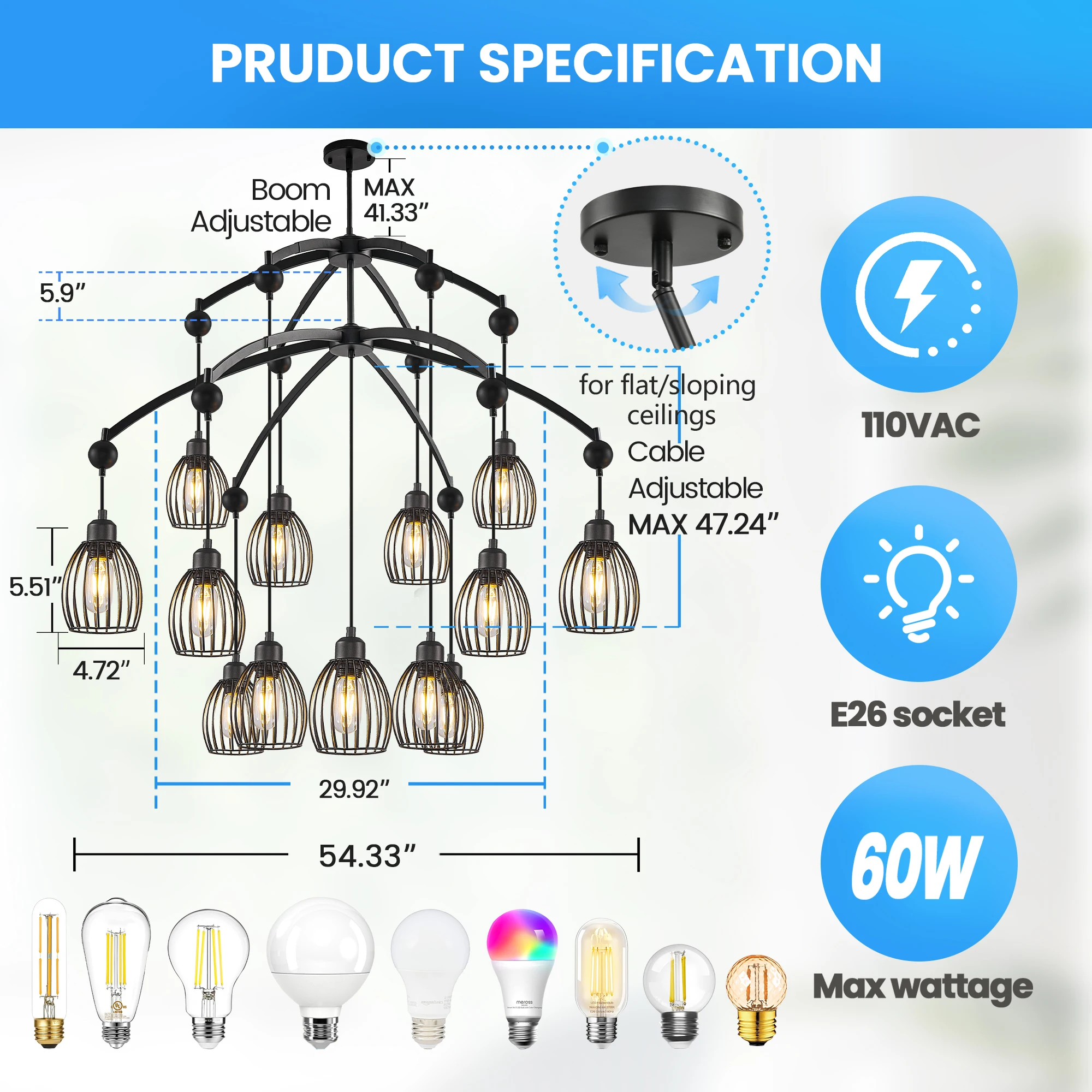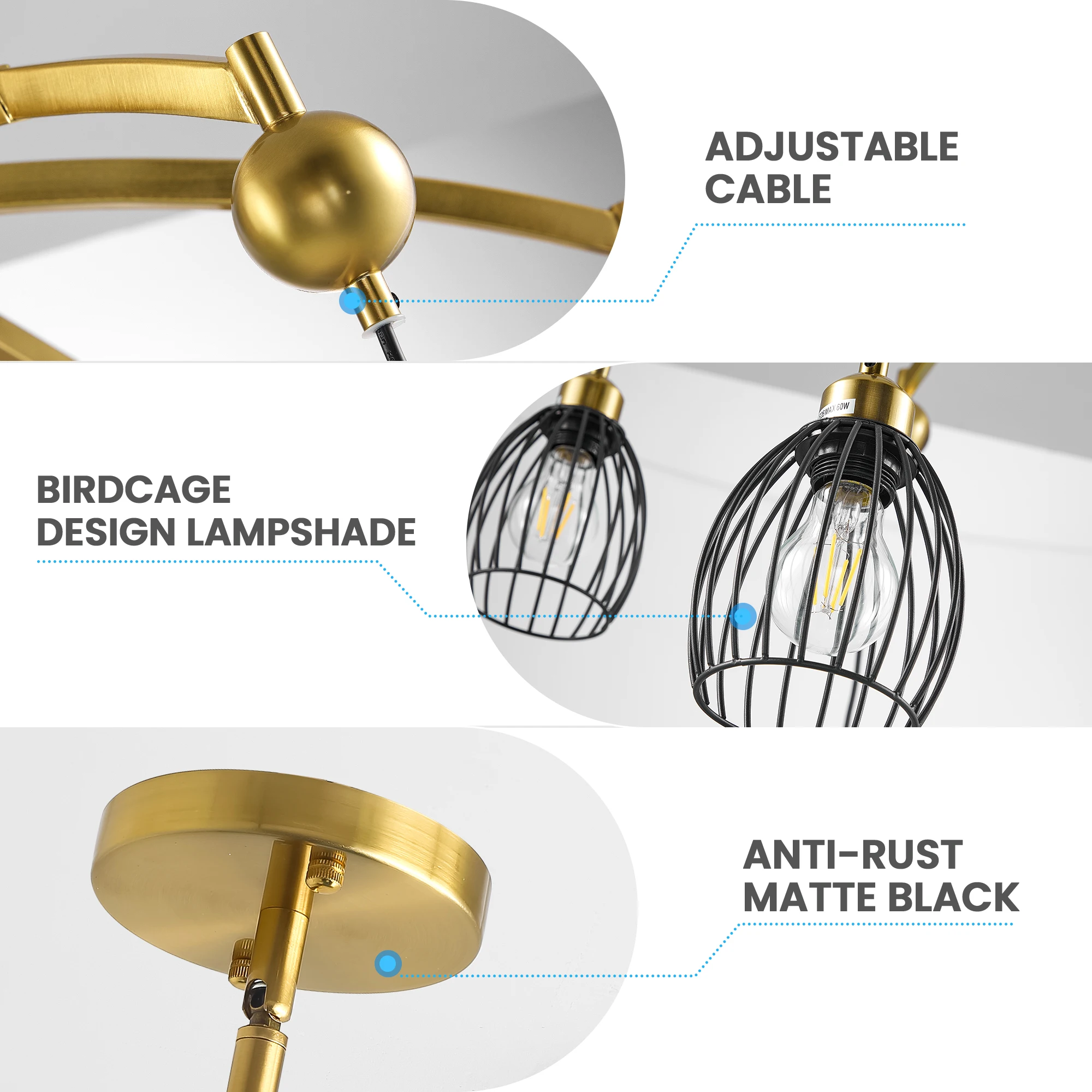 [Freely Adjustable the Cord Height]This modern chandelier has a extension hanging black rope which gives maximum flexibility in hanging heights according to your need. The height of each metal cage can also be adjusted according to the shape you want