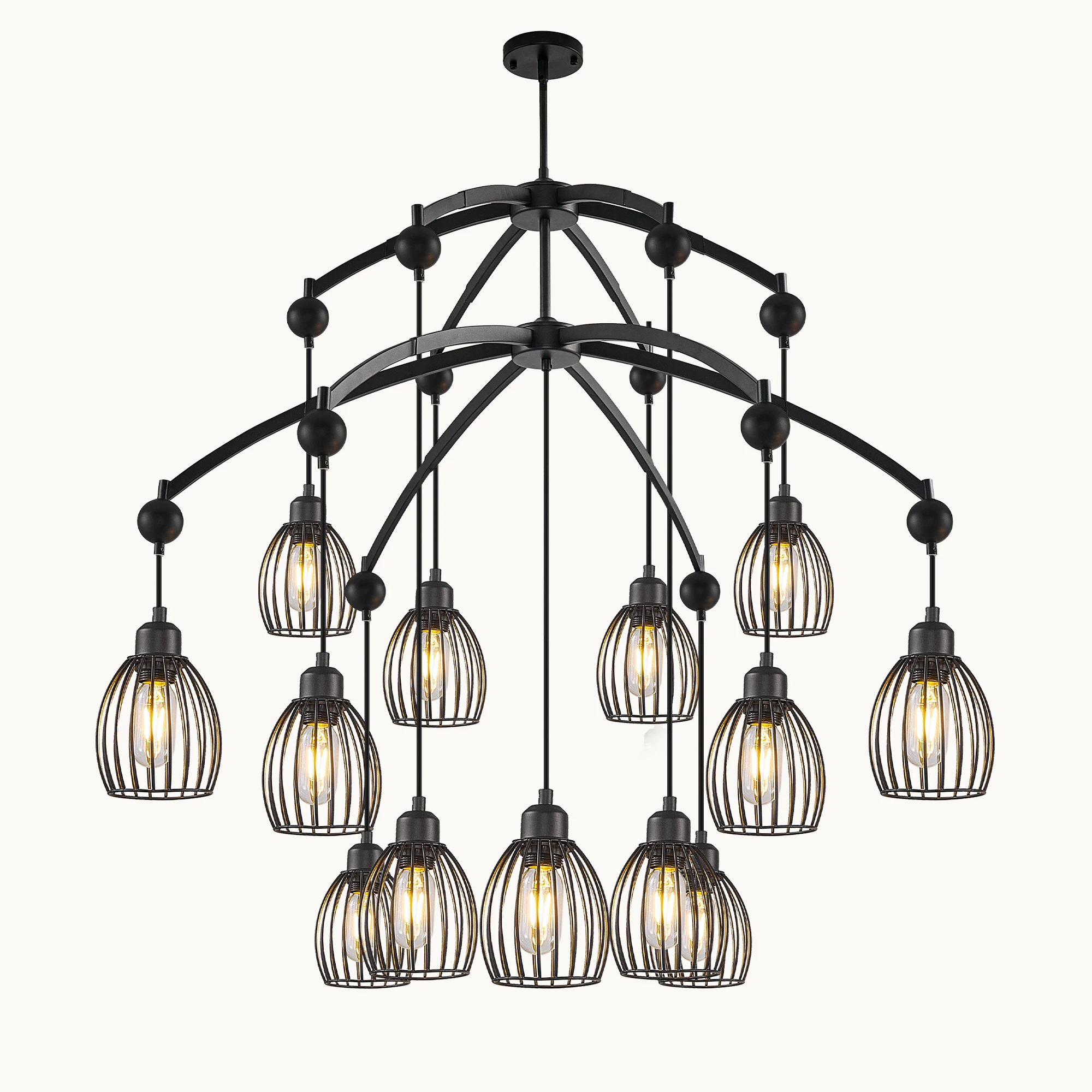 Modern Contemporary Lighting Industrial Adjustable Farmhouse Chandelier Unique Metal Cage with Black Rope Pendant Light Fixture