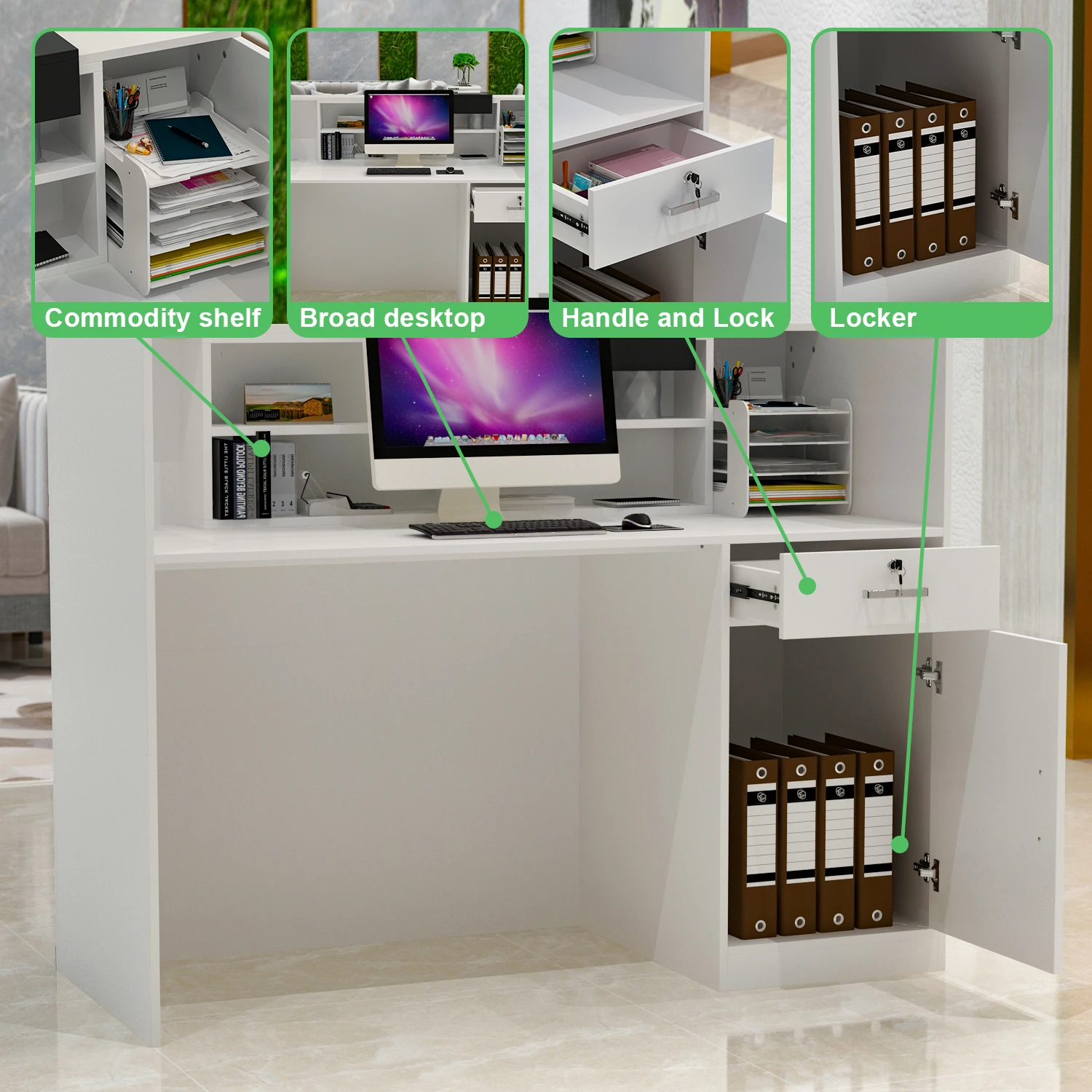 【Multi-Scenario Use】Designed with versatility in mind, this reception desk is suitable for various settings. It can be used in office lobbies, hotel front desks, retail stores, or anywhere a professional reception area is needed. Its adaptable design ensures it fits seamlessly into any space.