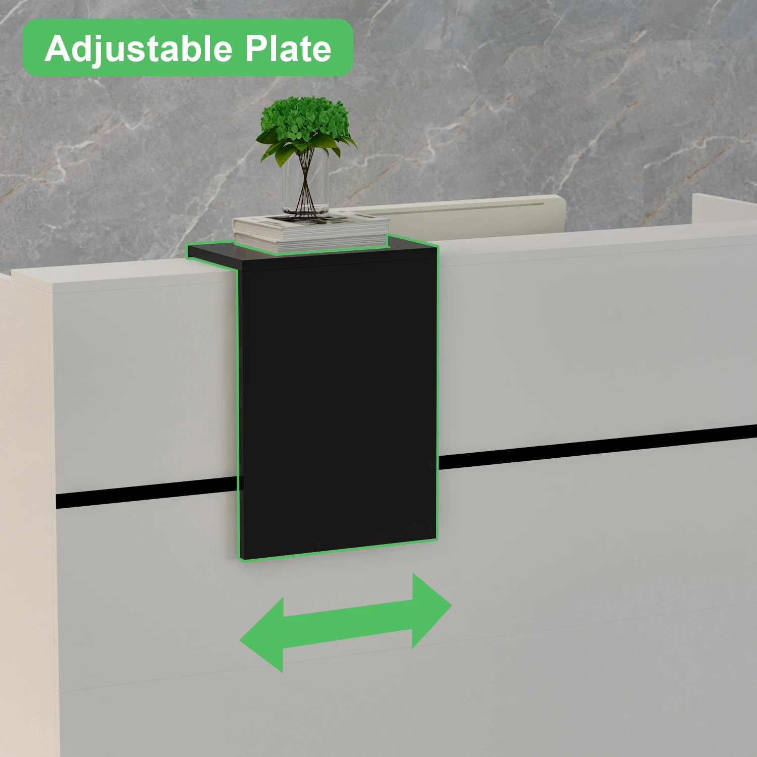 【Adjustable Style】The adjustable black decorative panel allows you to customize the look of the reception desk to match different interior design styles. Whether it's a modern, minimalist office or a more traditional corporate setting, this feature gives you the flexibility to create the perfect ambiance.