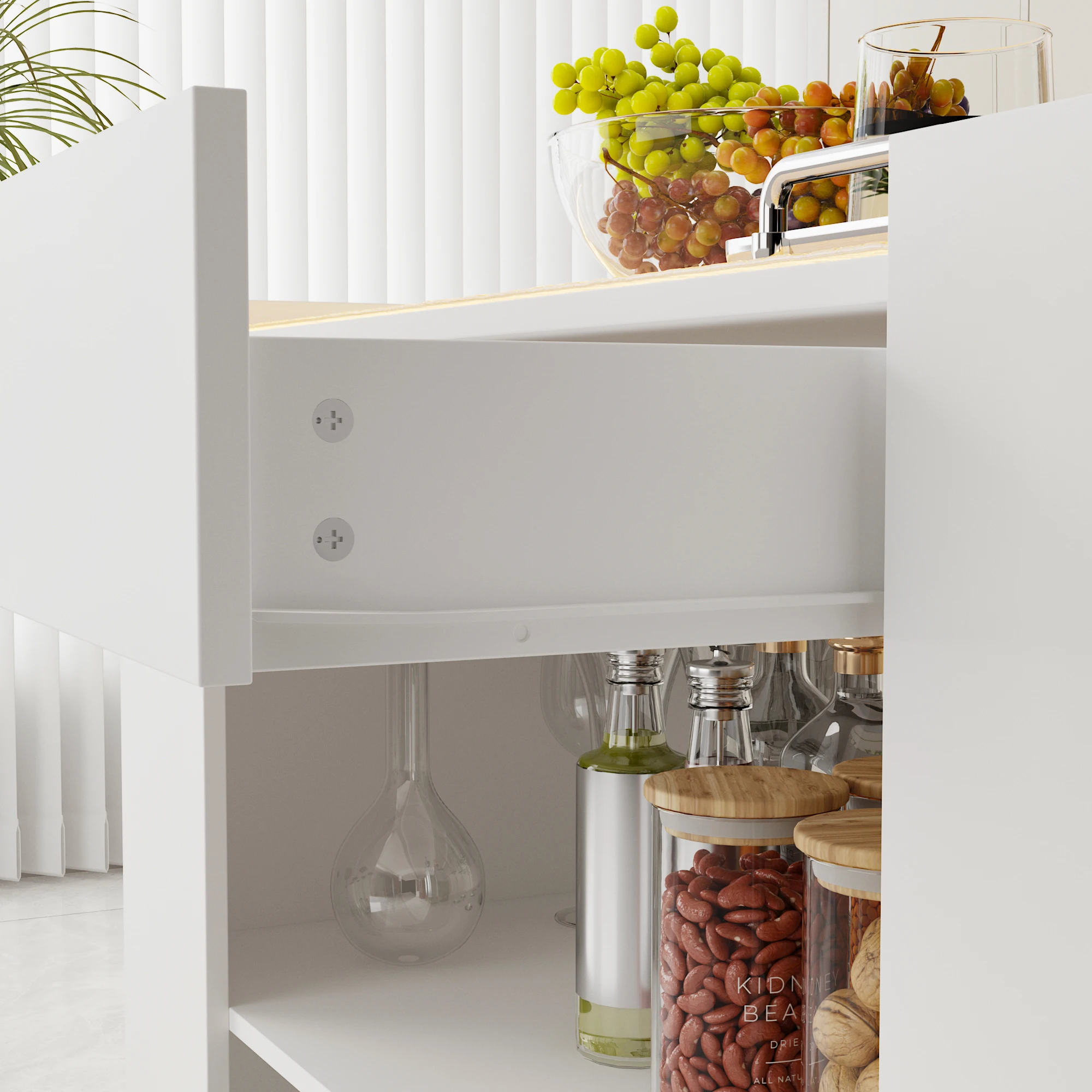 Modern kitchen dining cart with glass tabletop and LED lighting, sideboard cabinet with 2 Drawers and towel rack