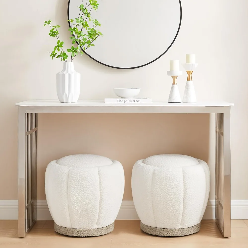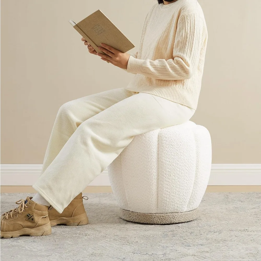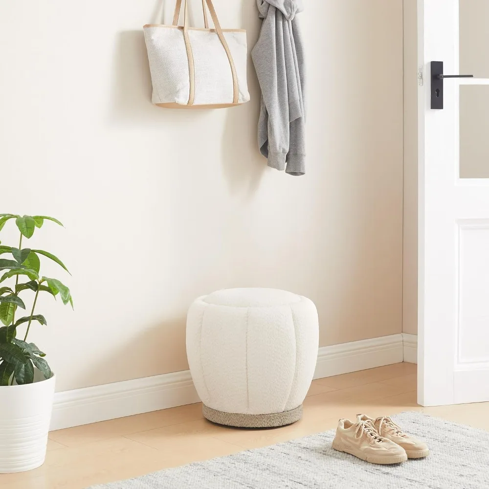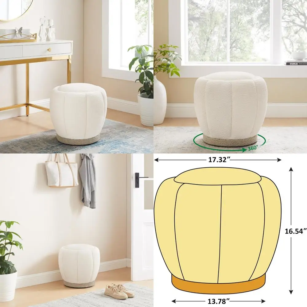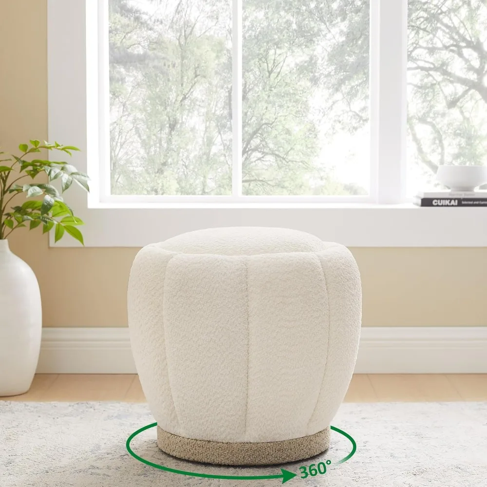 Modern Swivel Upholstered Ottoman, Compact Living Room Footstool, Round Shoe-Changing Entryway Stool, Ready to Use, White