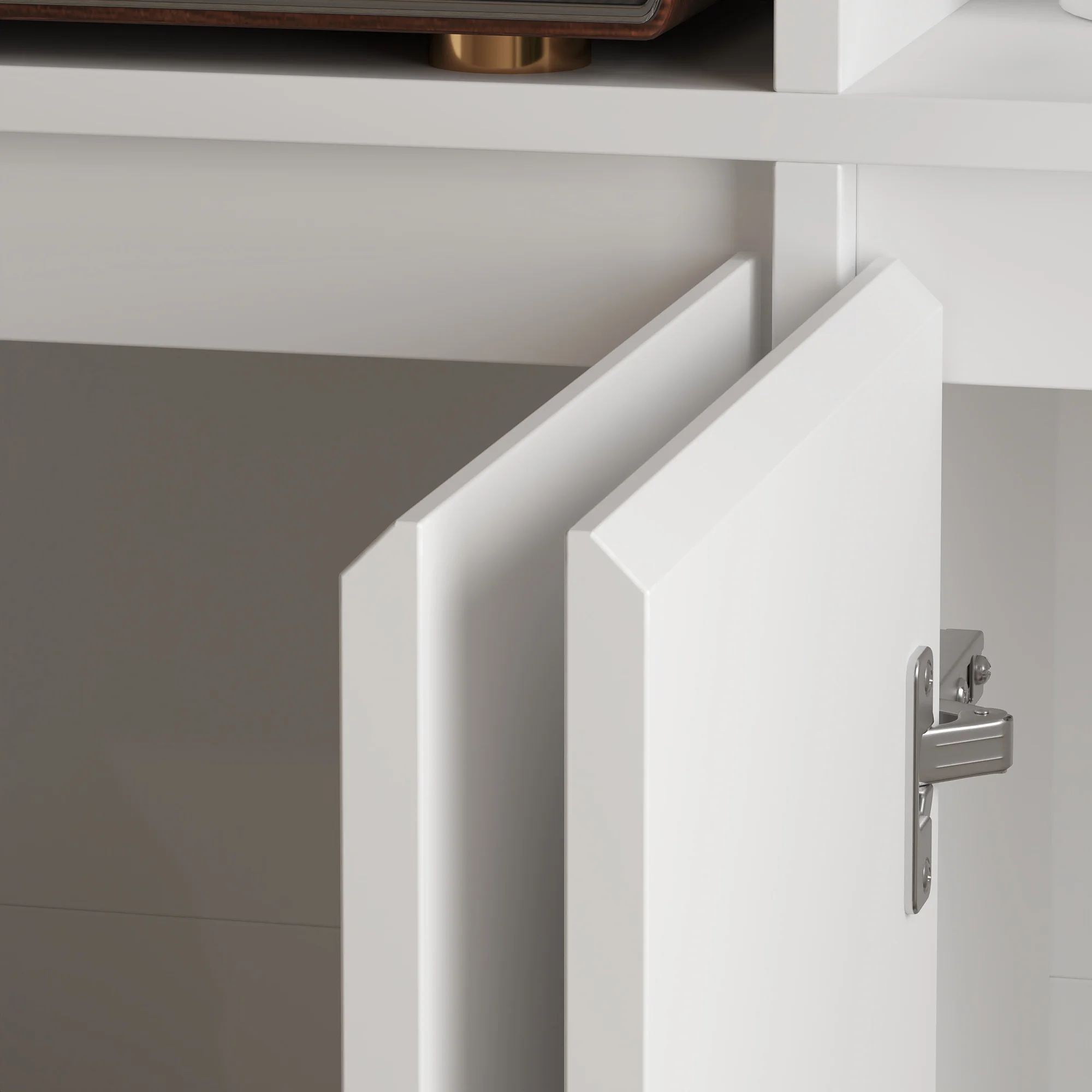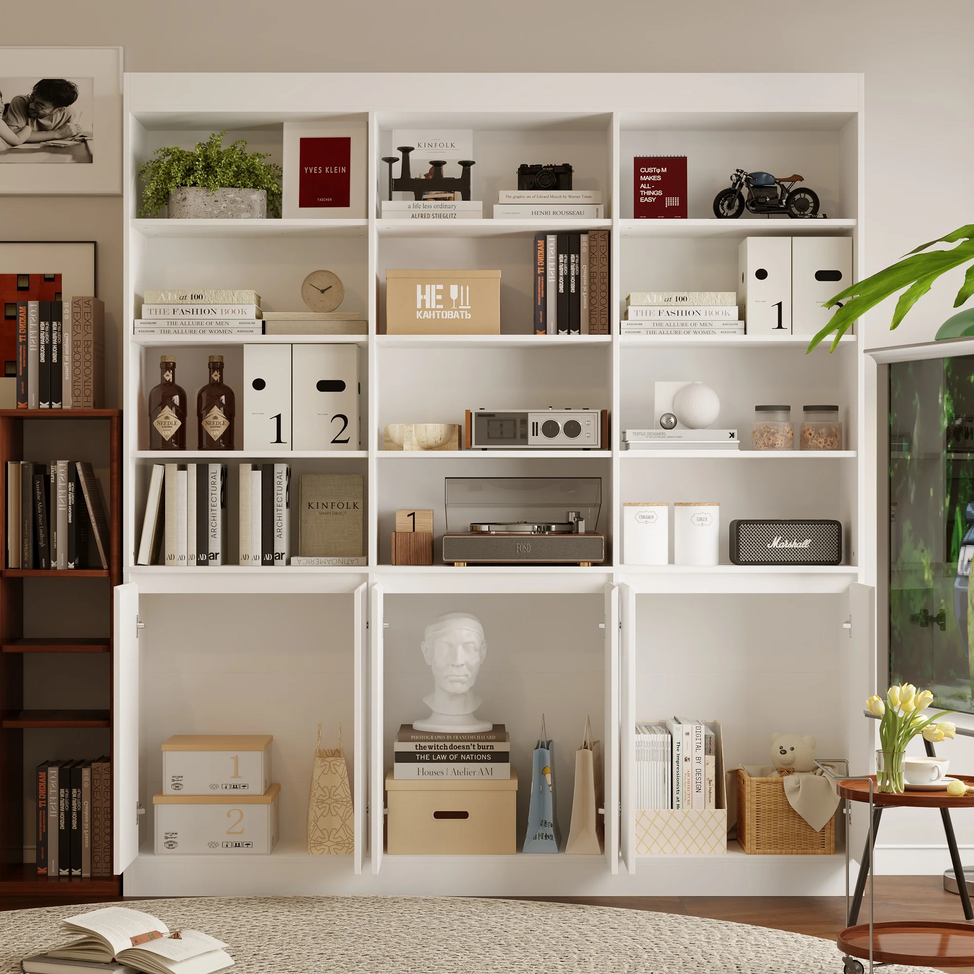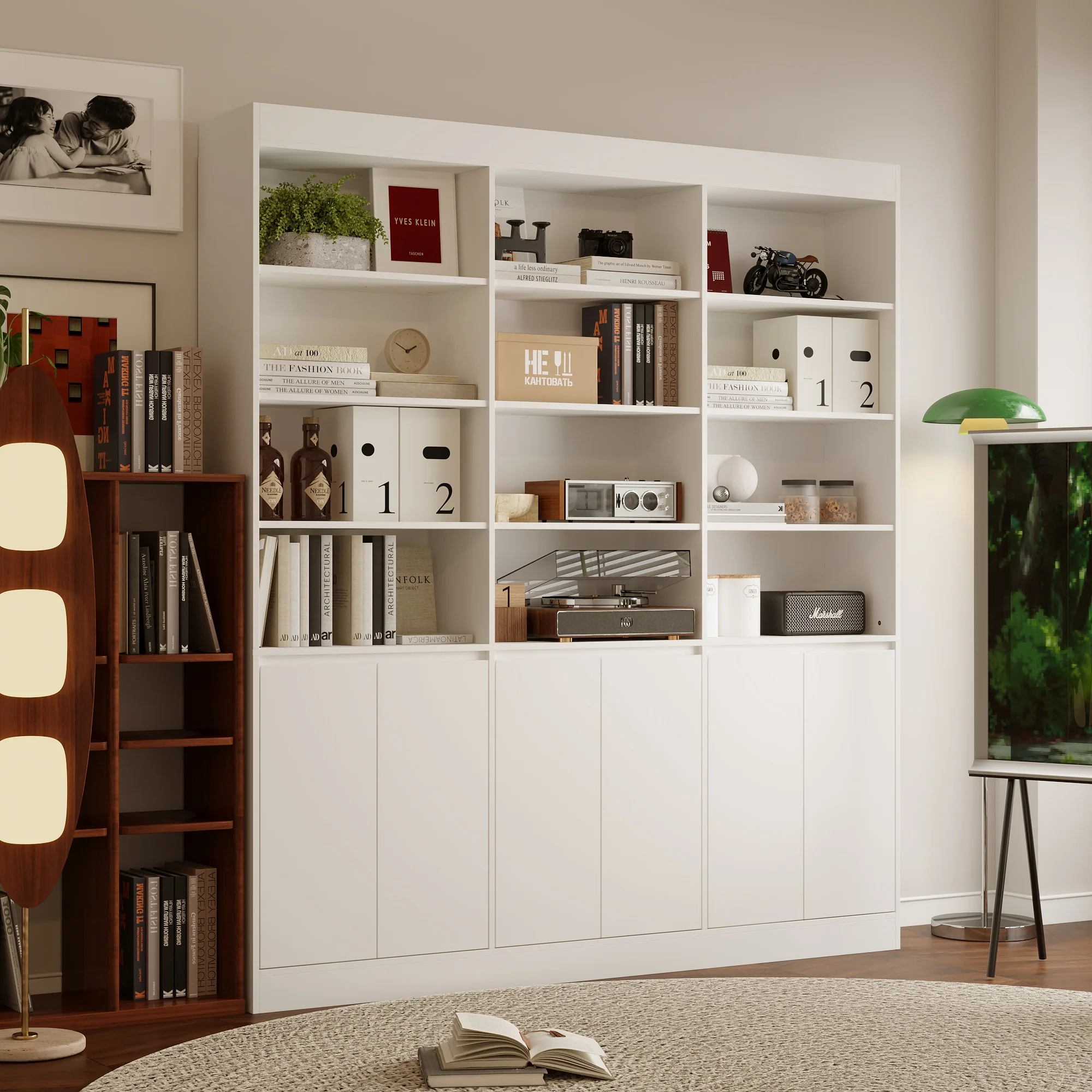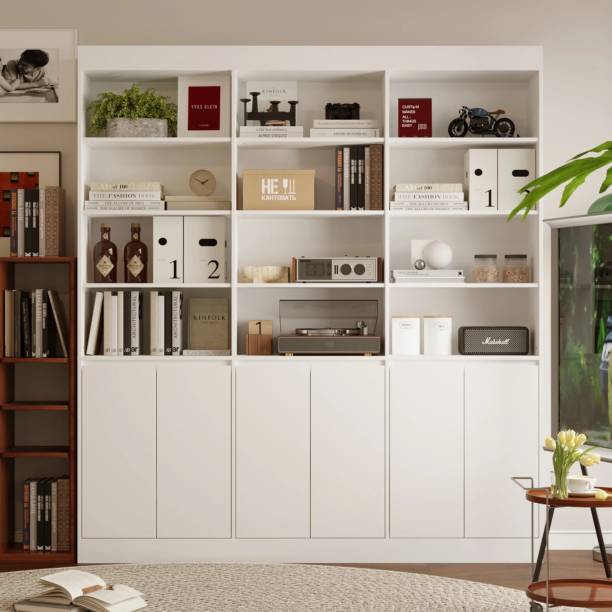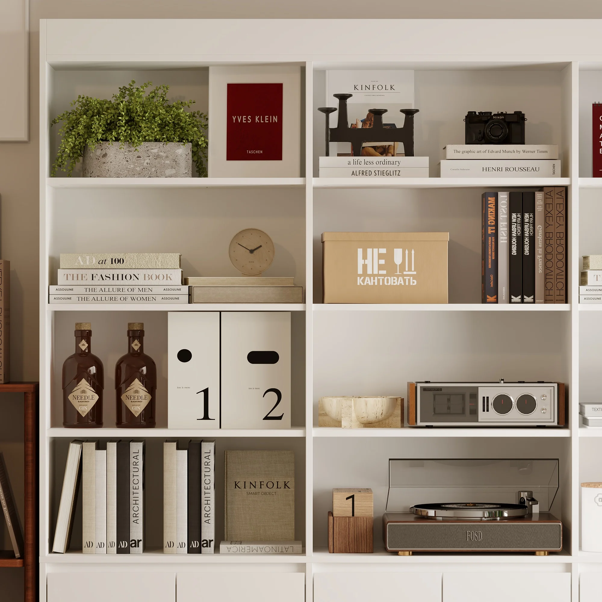 【Smart Storage Solutions】With multiple open shelves and cabinet doors, this bookshelf efficiently organizes your space. Use the upper open shelves for books and decor and the lower cabinets for hidden storage of larger items like record players or media devices.