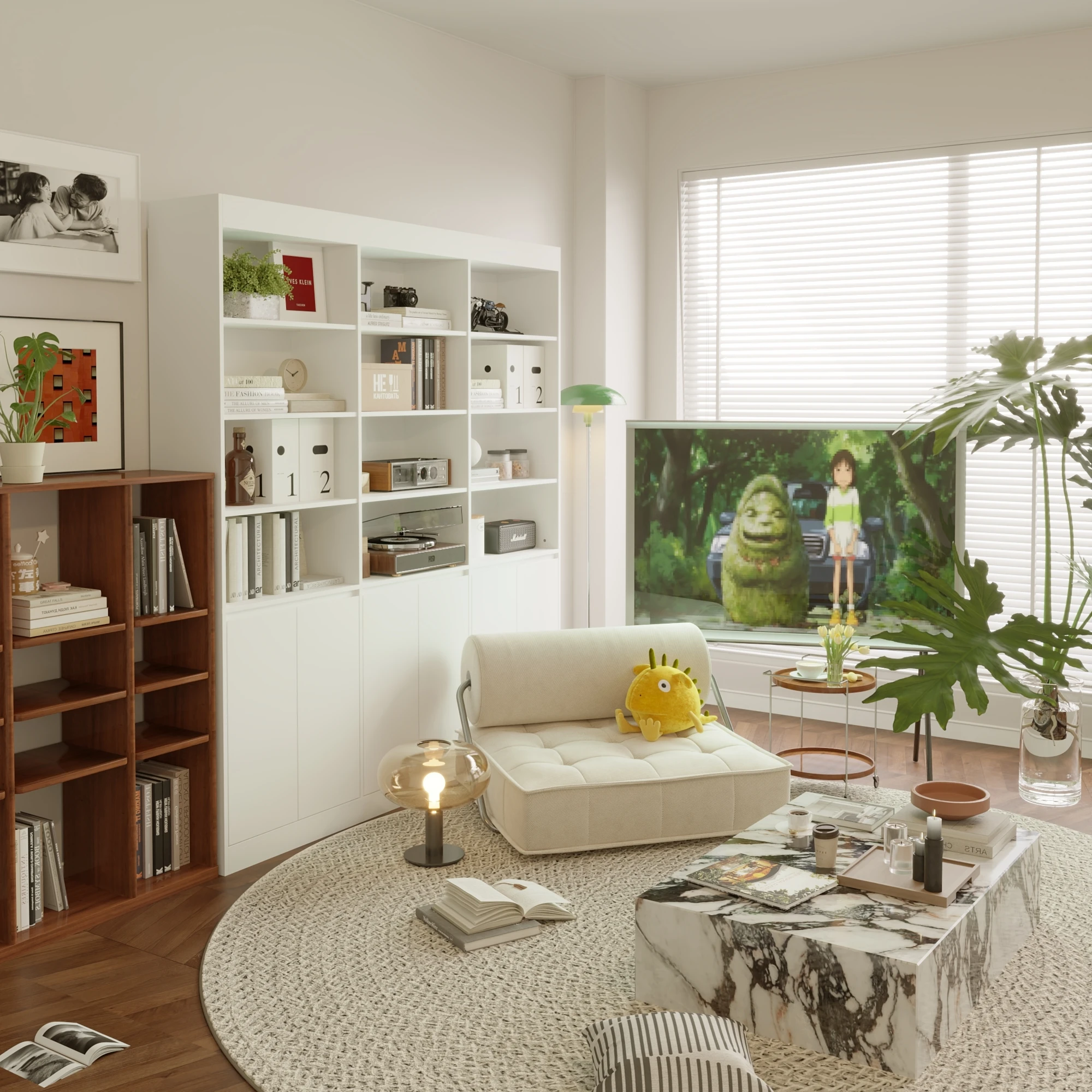 【Clean Modern Design】The bookshelf offers a sleek and minimalist aesthetic, perfect for contemporary living spaces. Its white finish and tidy lines enhance any room's ambiance, while the open grid design allows for creative arrangement of books, decor, and storage boxes.