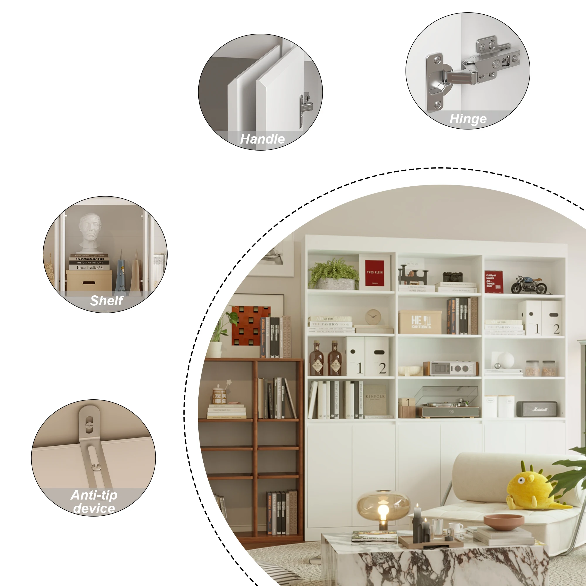 Modern Tall Bookshelf with Doors, 4-Tier Cube Storage Shelf with 12 Storage Compartments for Living Room, White
