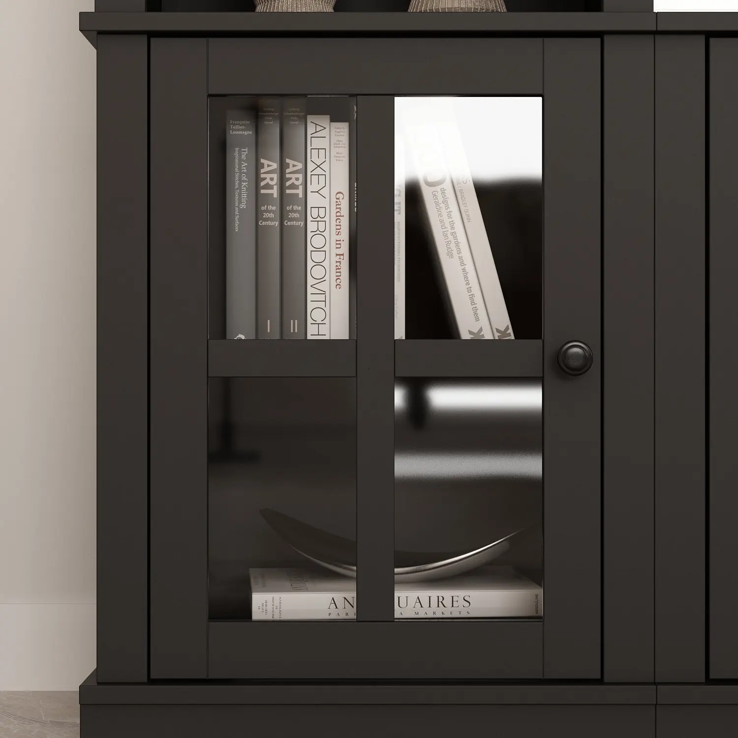 Adequate storage space - This TV stand has multiple storage options to meet various needs. Cabinets with glass doors provide storage space for electronic devices such as DVD players, game consoles, and sound systems, while open shelves on both sides and top provide additional storage space for books, decorations, and more.