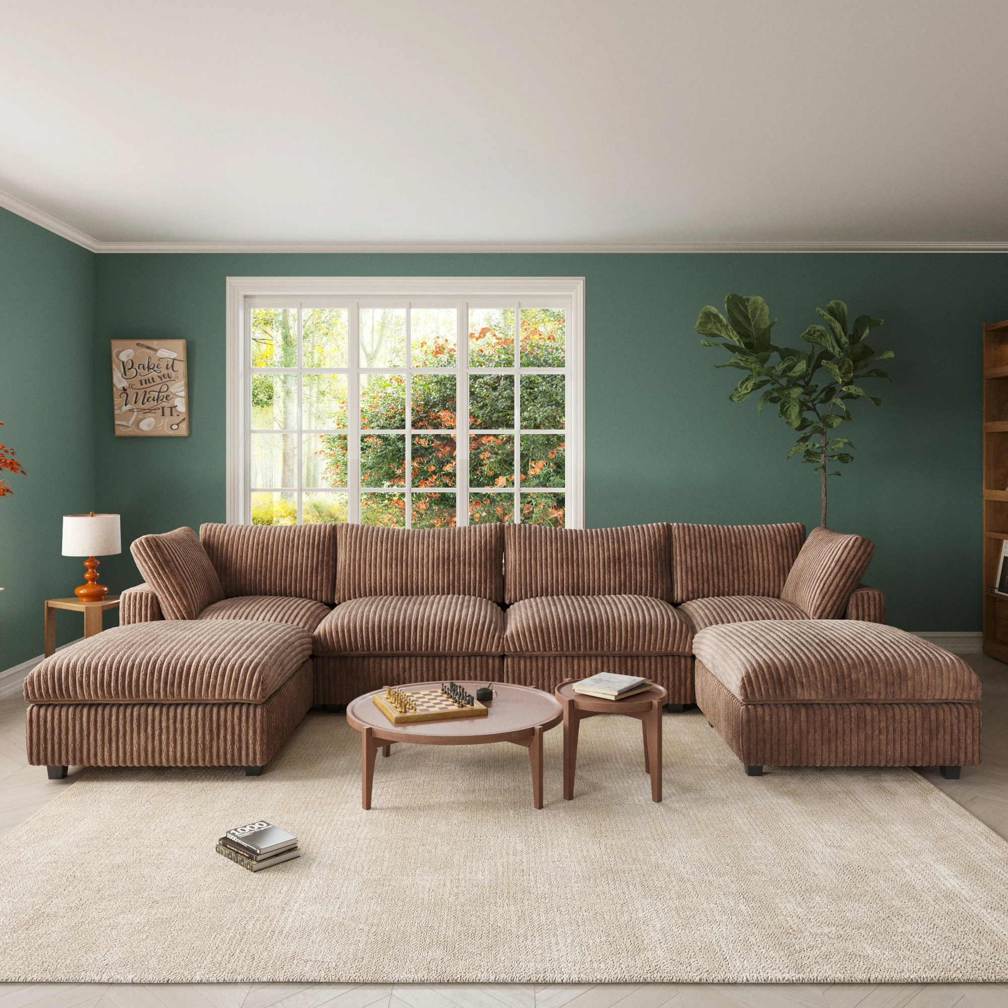 Modular Sectional Sofa Convertible 6 Seat U Shaped Couch with Ottoman Deep Seat Cloud Couch Comfy Plush Sofas for Living Room