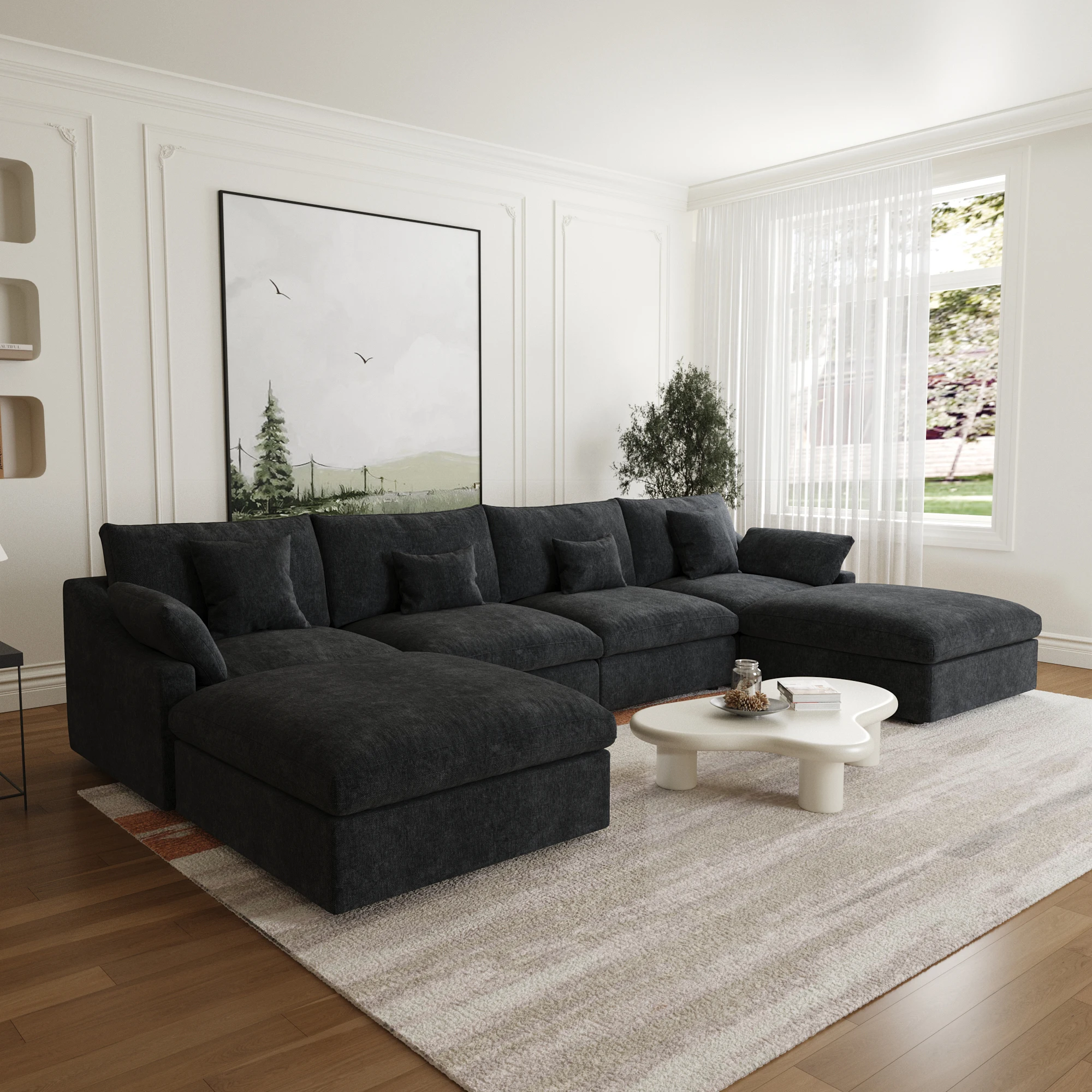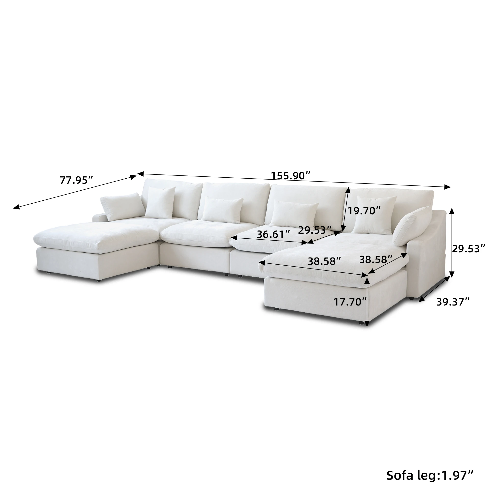 Modular Sectional Sofa for Living Room 160" Cloud Couch Down Filled U Shaped Couch with Ottoman Modern 6 Seater Convertible Sofa