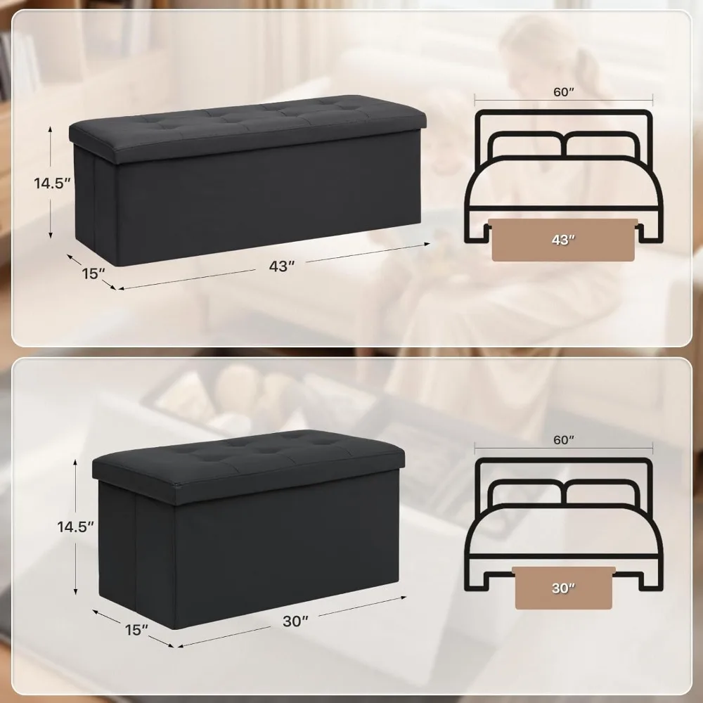 Multi-Functional Ottoman Storage Bench, 43x15x15, Foot Rest for Living Spaces, Bedrooms, and Entryways