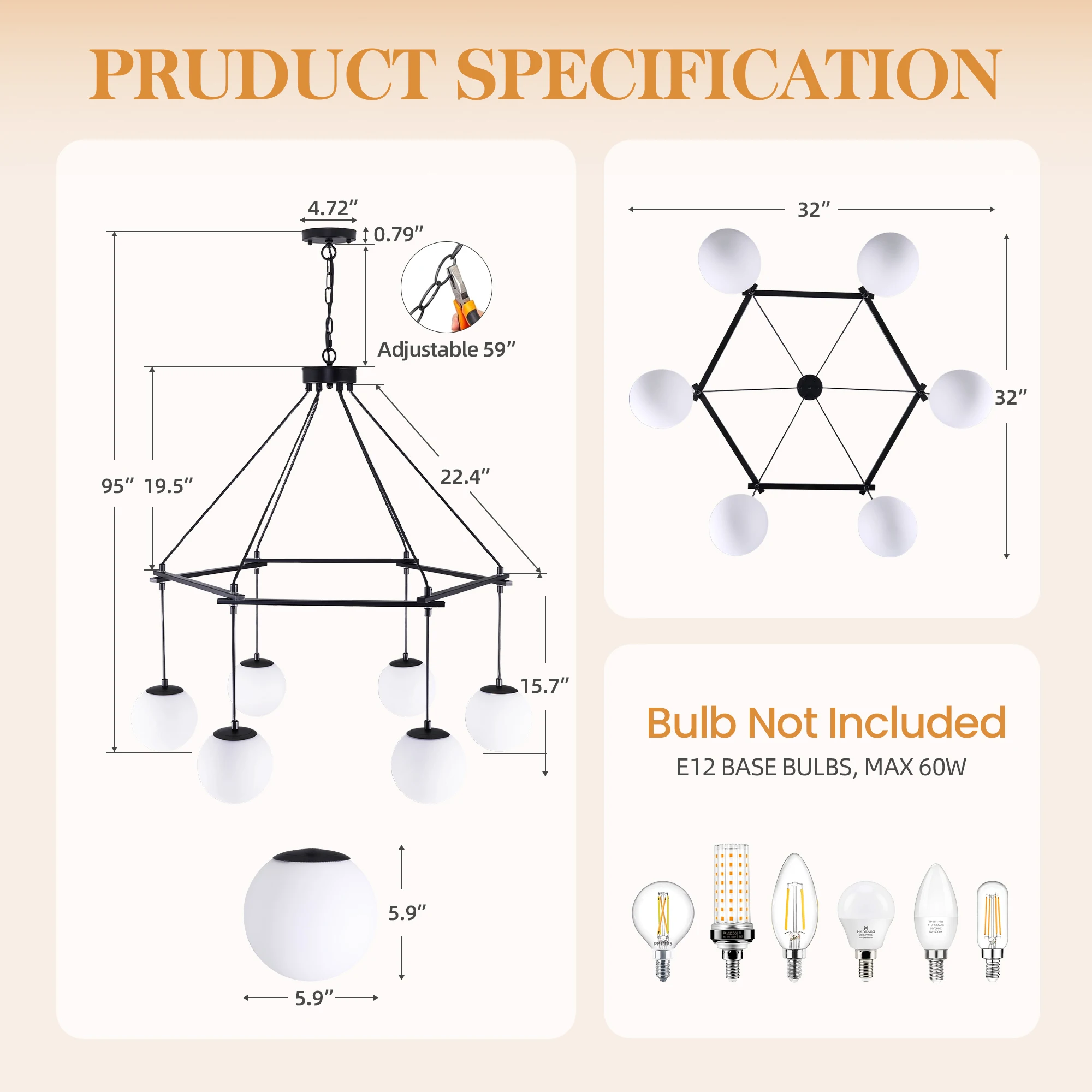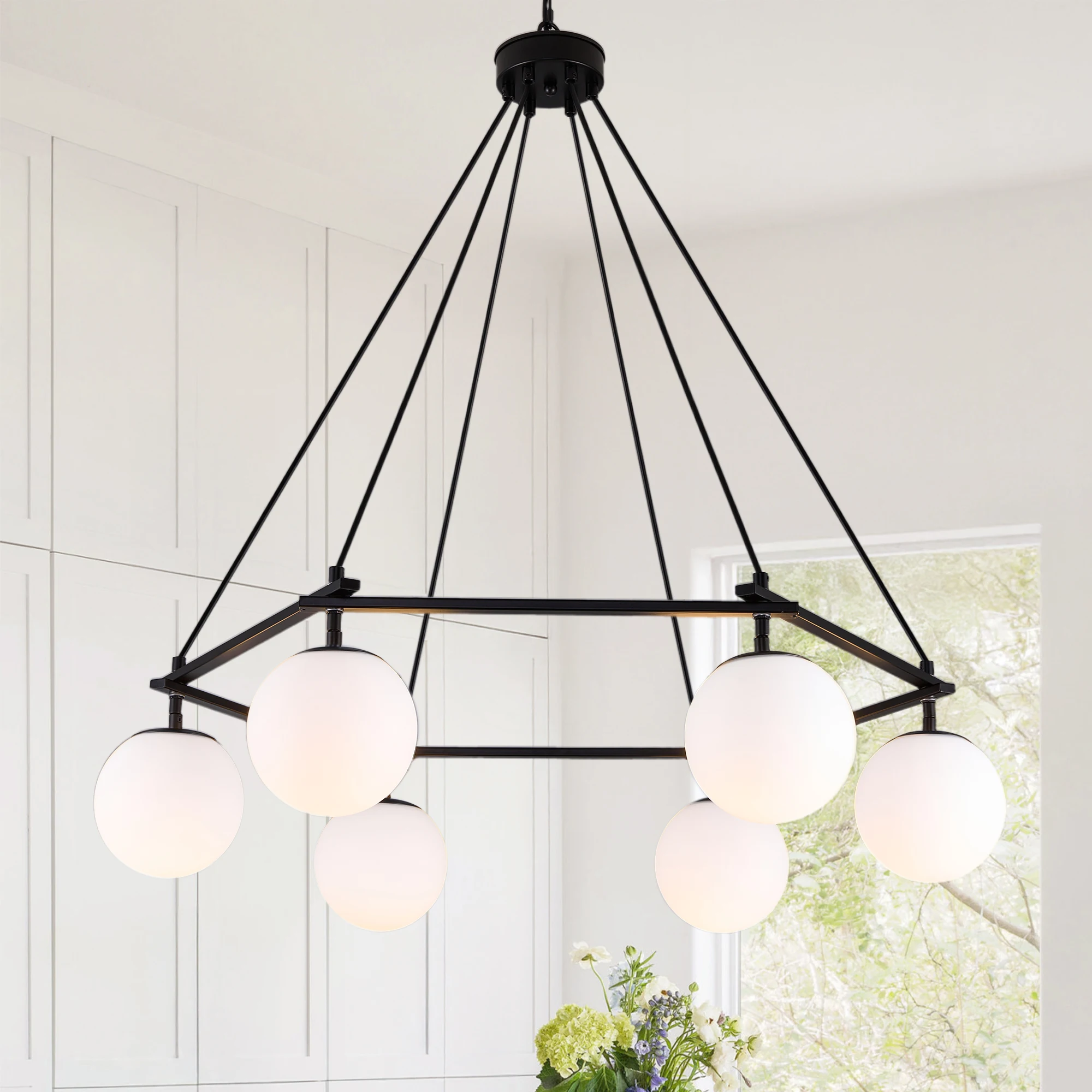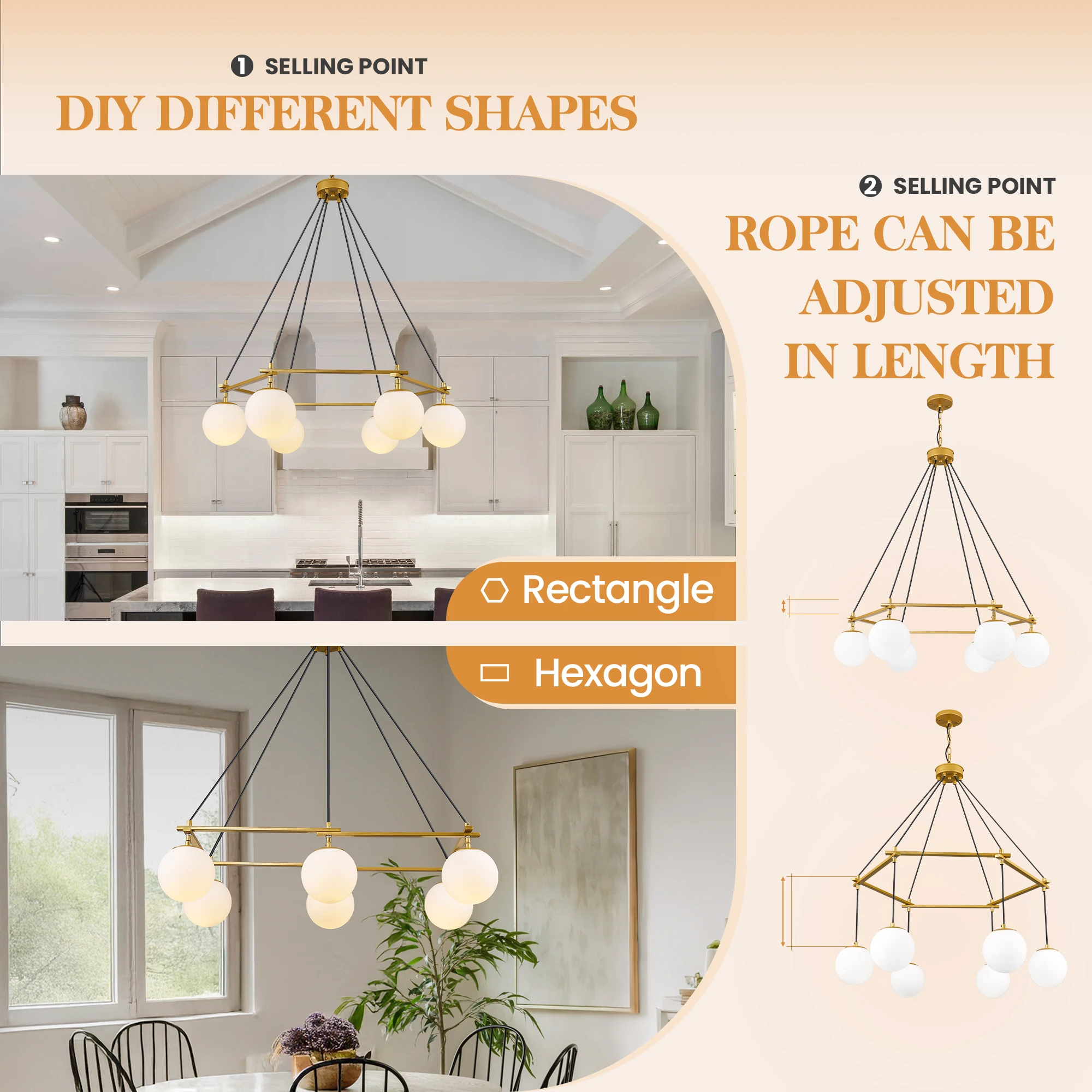 Nordic Modern LED Pendant Gold Light White Glass Ball 6 Heads Hanging Lamp for Kitchen Living Dining Room Suspension Luminaire