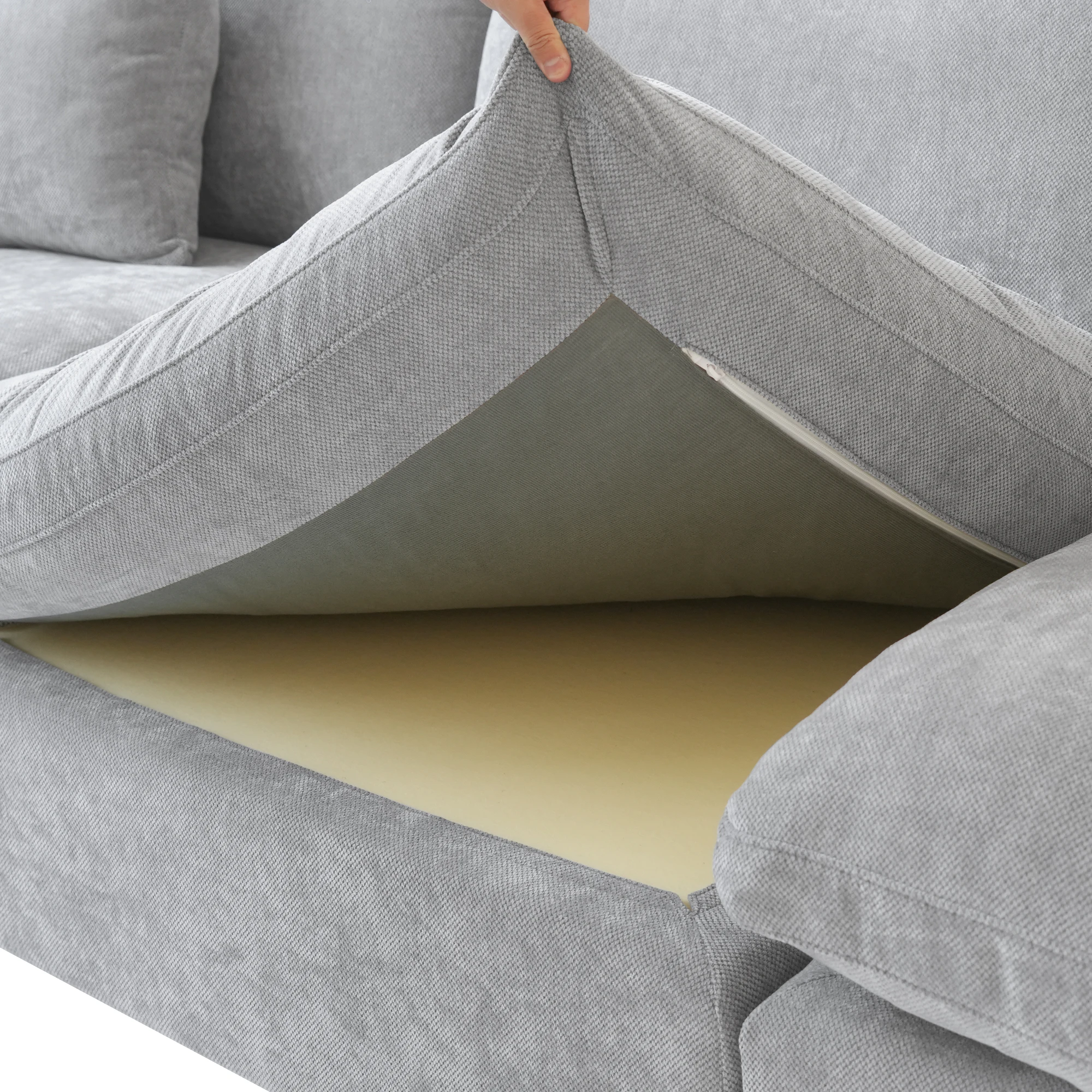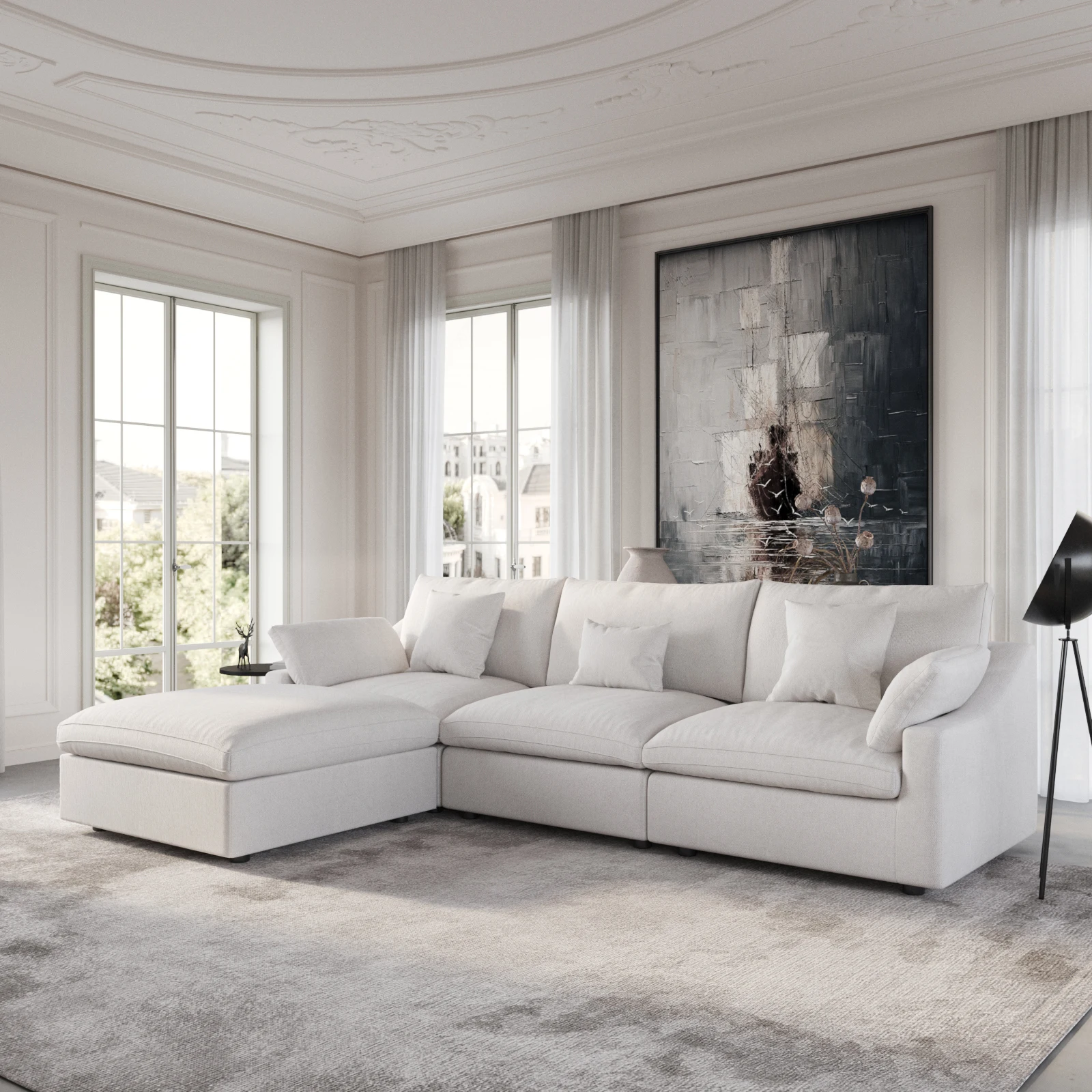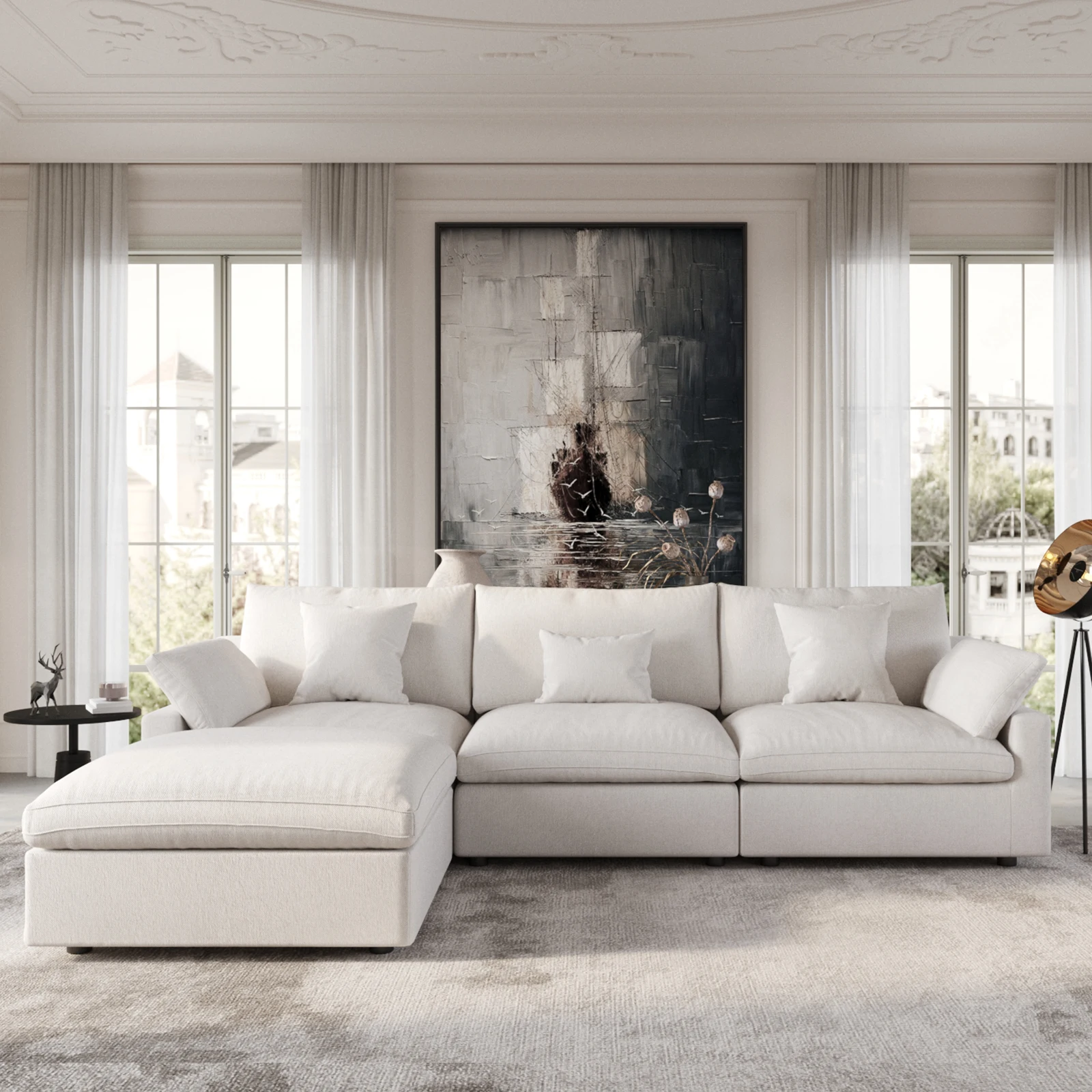 Modular Sectional Sofa Cloud Couch, 119.29" L Shaped Couch with Chaise Ottoman, Linen Blend Fabric Minimalist Deep Seat Couches for Living Room, Sofa Covers Washable&Removable