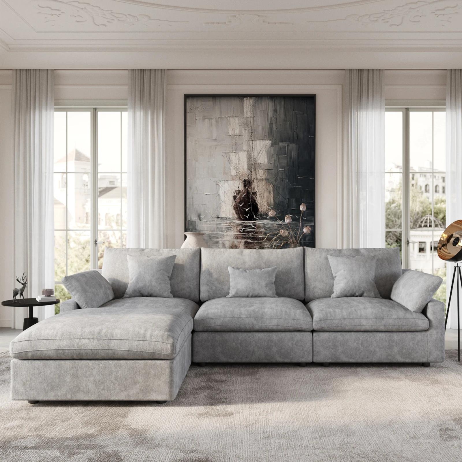 Oversized Cloud Couches for Living Room 119.29" L Shaped Convertible Sectional Couch with Ottoman 3 Seater Large Sectional Sofa