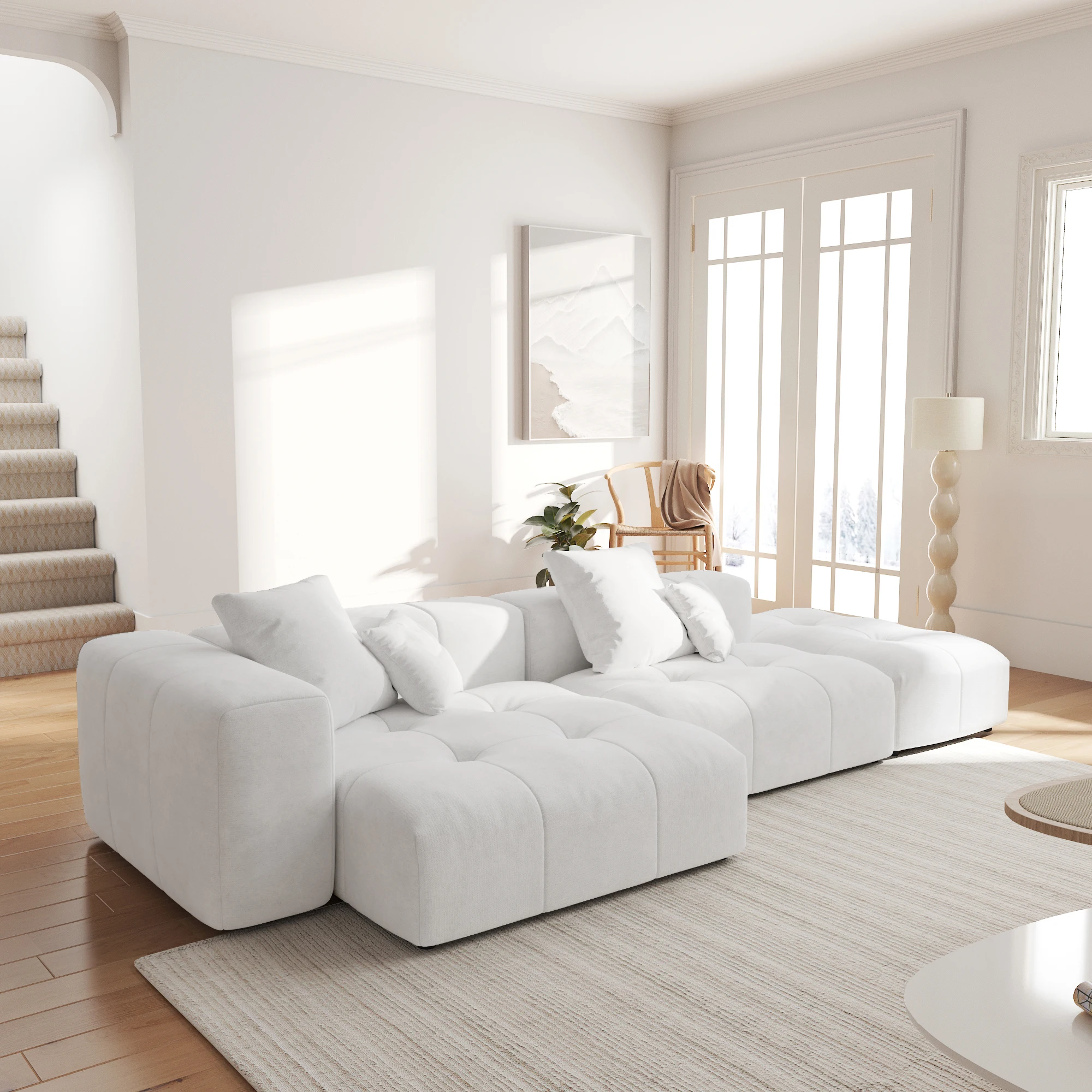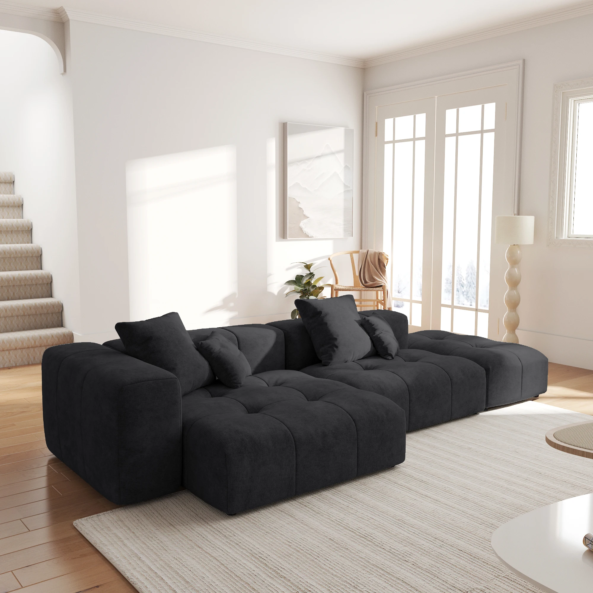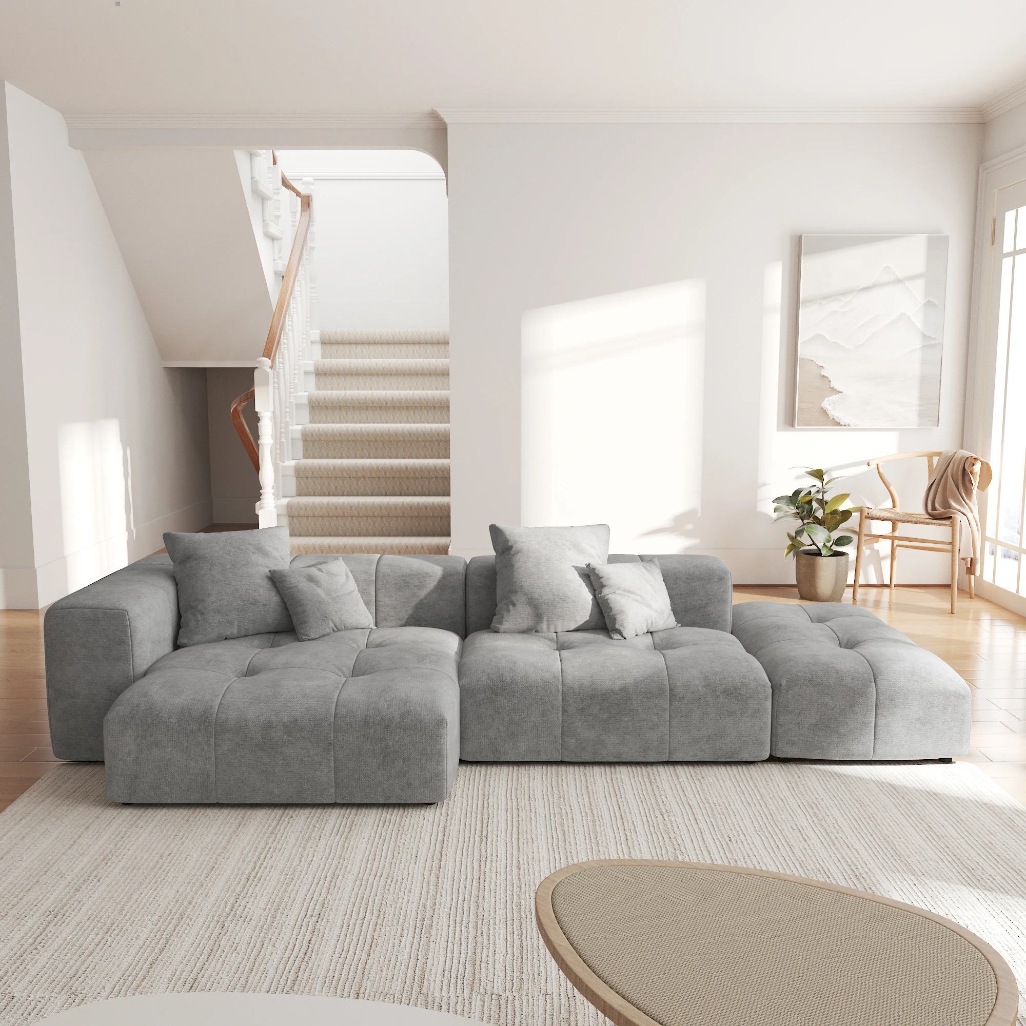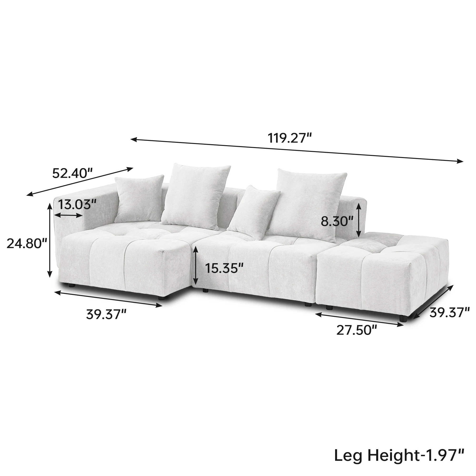 Sdorens Modular Sectional Sofa with Ottoman 119" Cloud Couch Linen Deep Seat with Pillows Convertible Sofas for Living Room