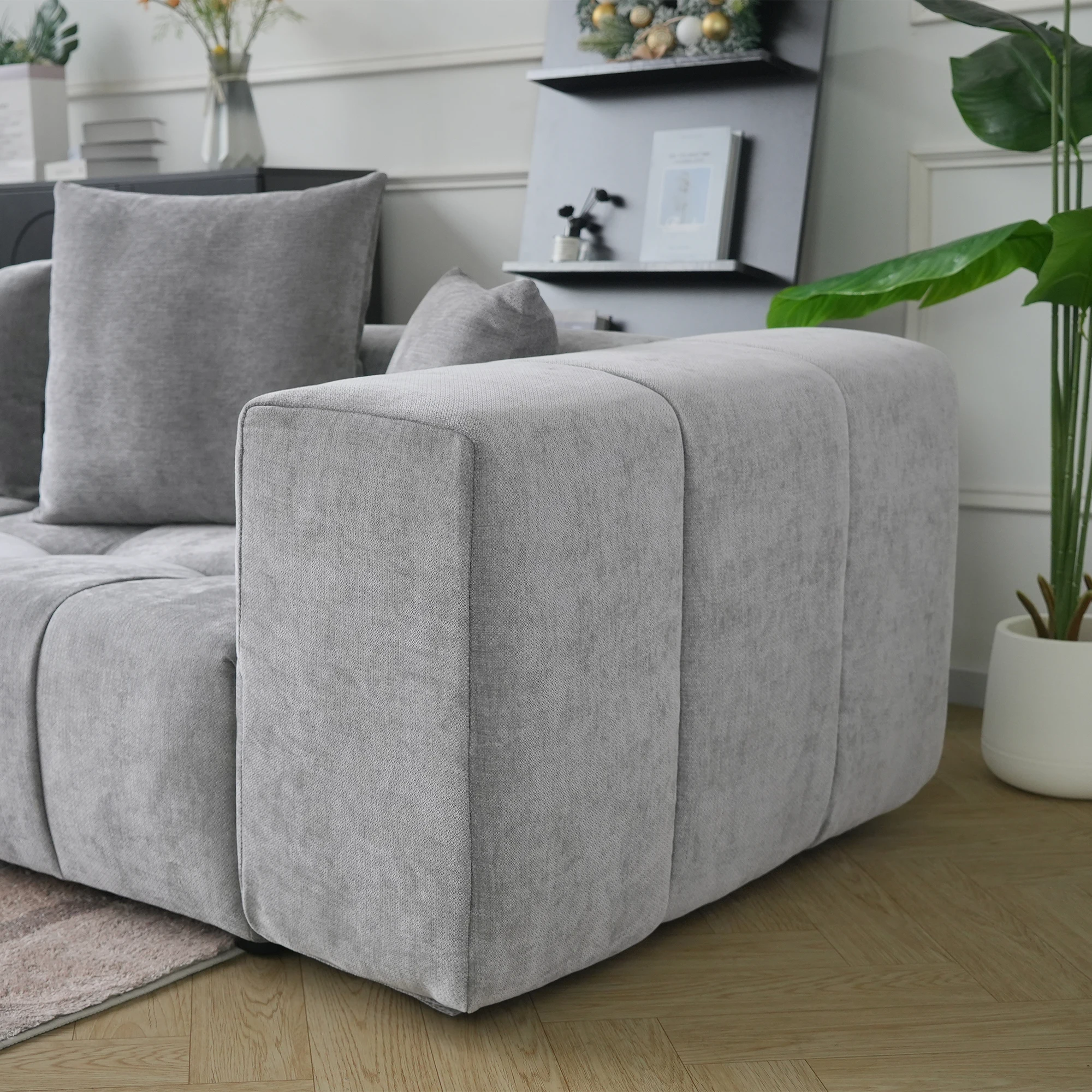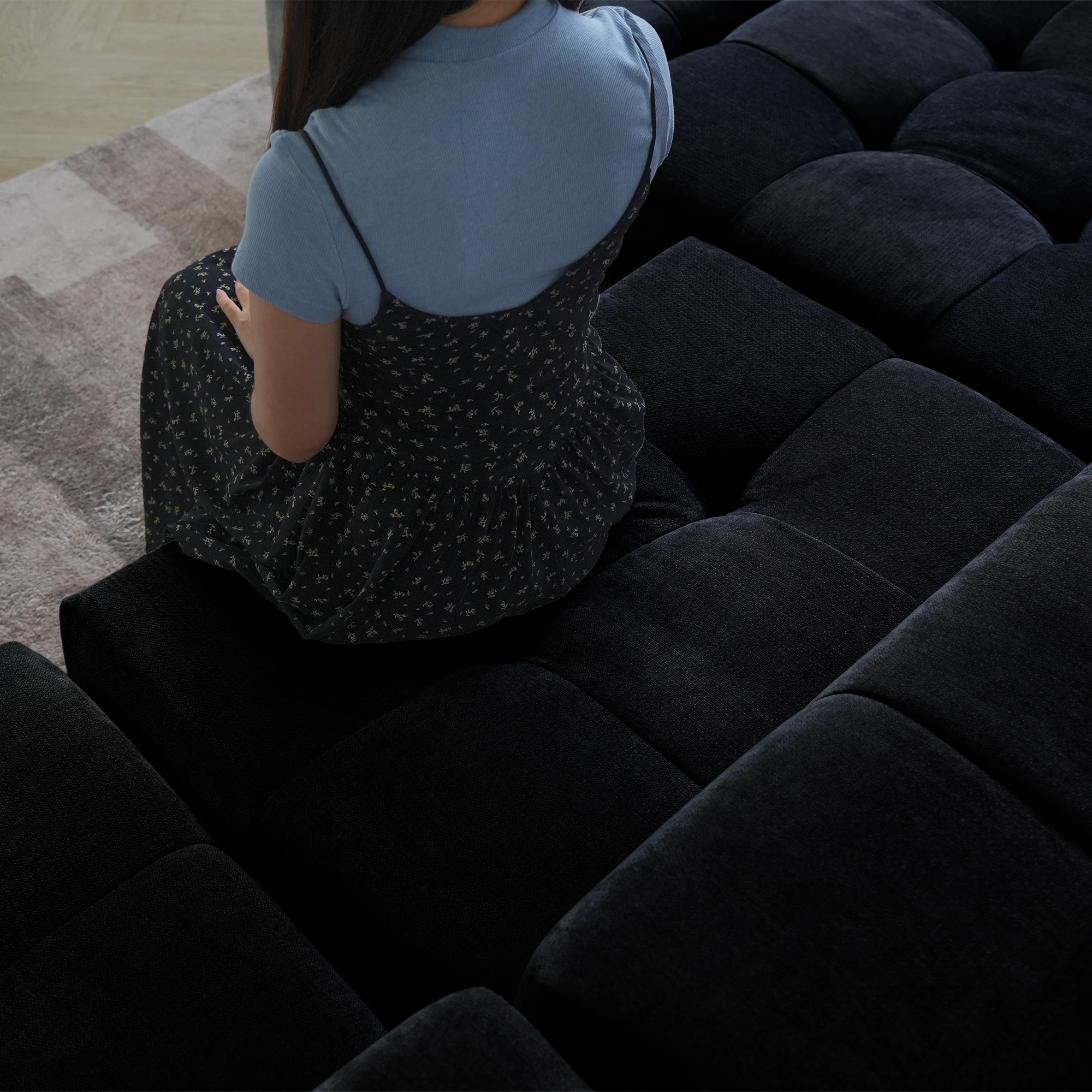 This modular sofa features a solid wood frame, offering robust durability and an eco-friendly touch, while adding a natural, rustic charm to its overall design. The filling is high-quality sponge,Doll cotton, which does not collapse or deform after sitting for a long time.