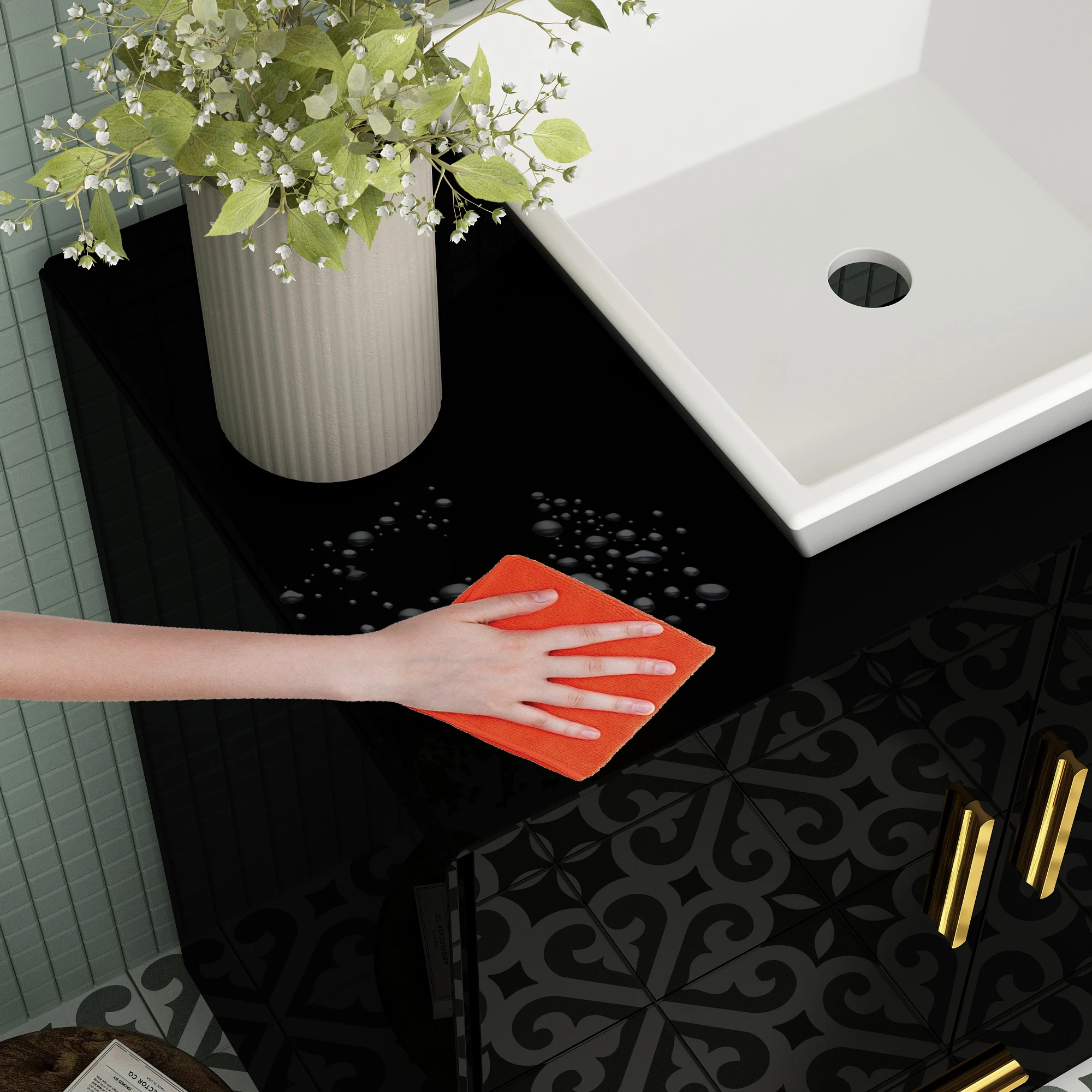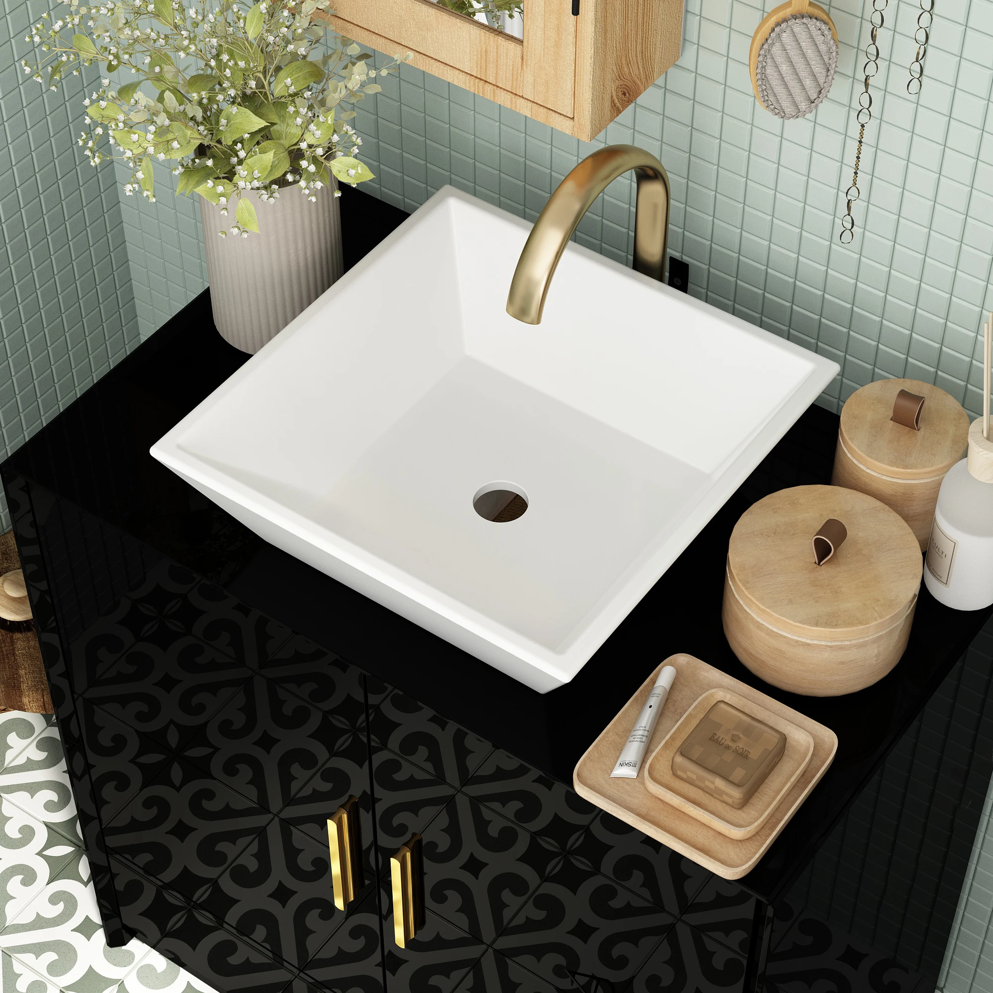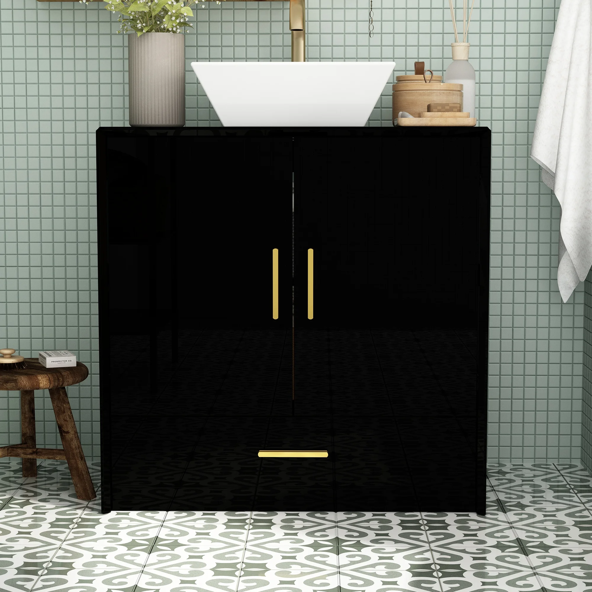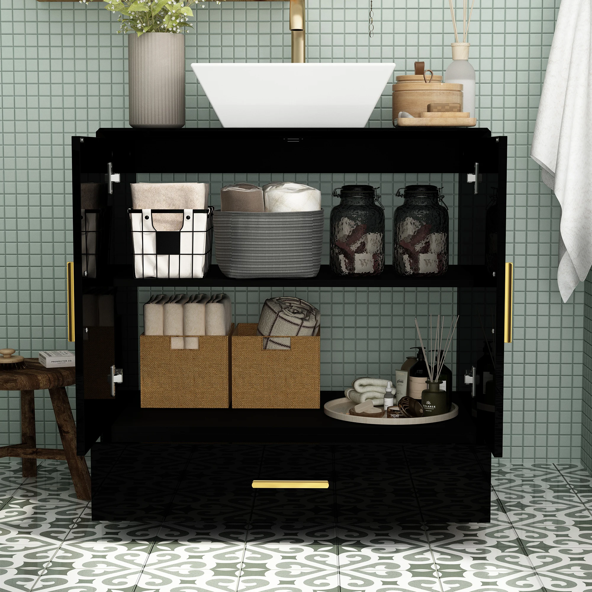 【Golden Accents】The golden handles on the drawers and doors serve as the perfect finishing touch. They not only enhance the visual appeal but also provide a premium feel every time you use them. These handles complement various bathroom styles, from contemporary to transitional, adding a hint of luxury without overwhelming the space.