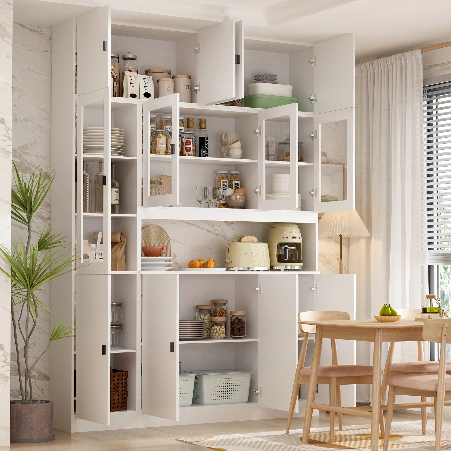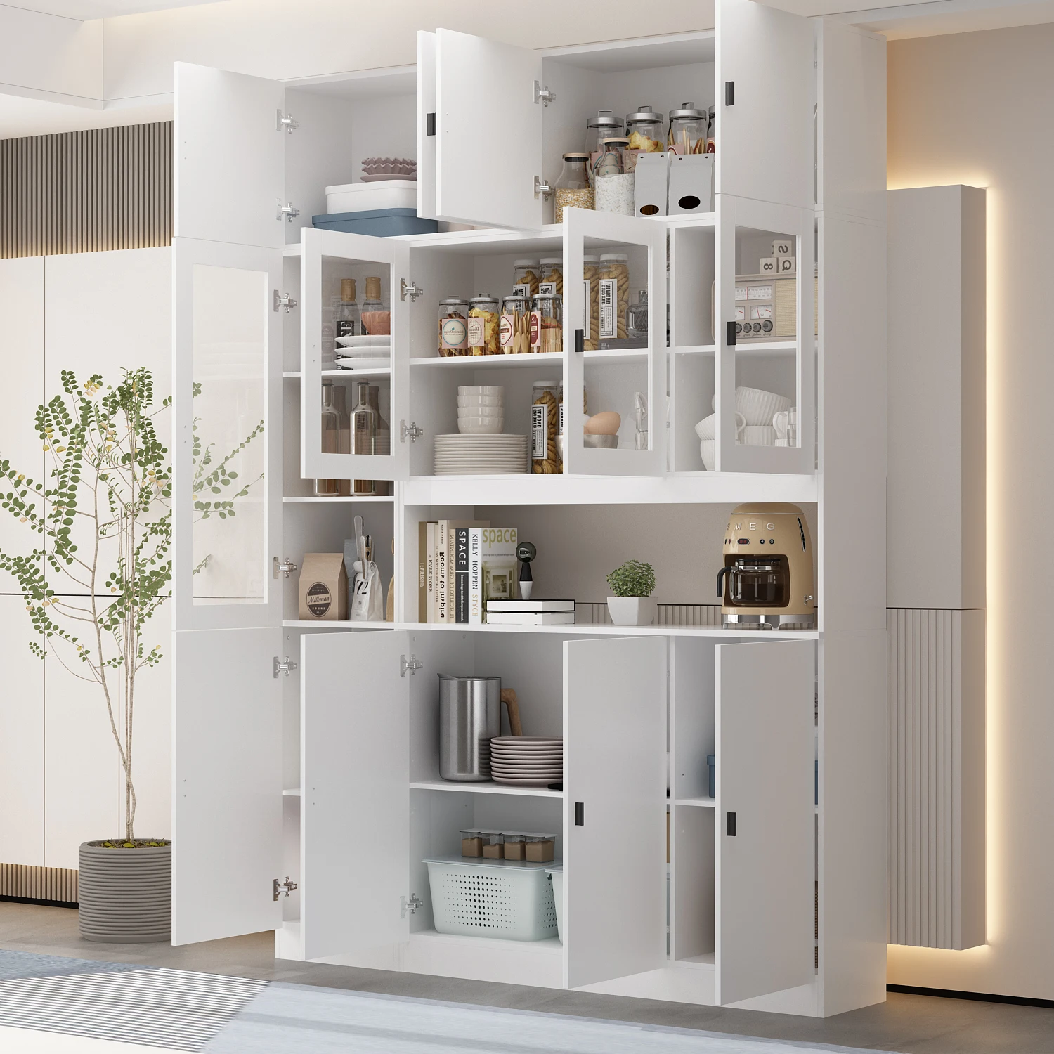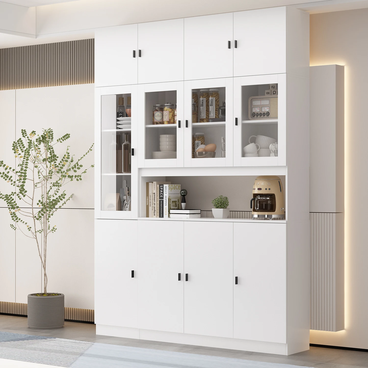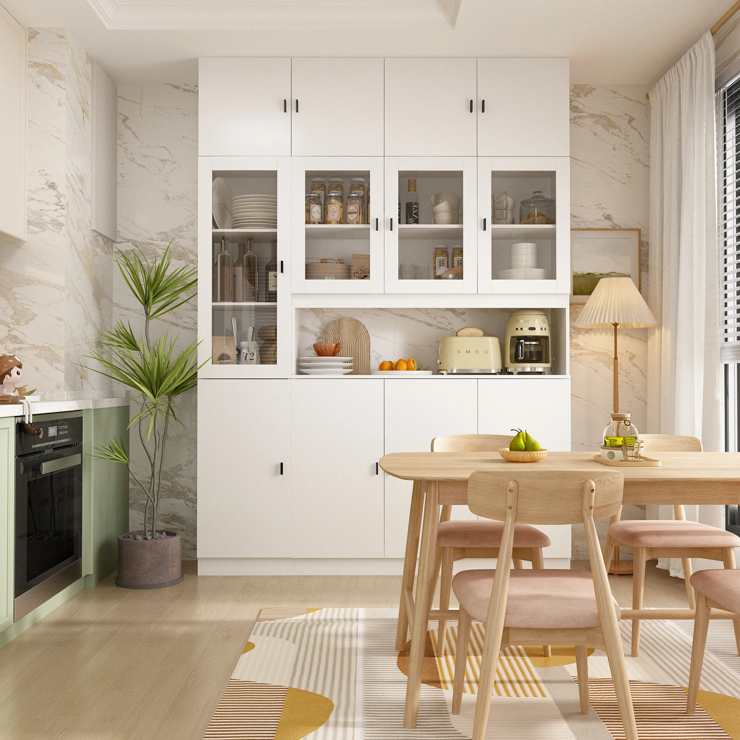 Looking for a functional and stylish storage piece? This tall cabinet with doors is perfect for your home. It has a minimalist white design with sleek metal handles, working as a versatile dining cabinet, sideboard, credenza, or part of tall sideboards and buffets that fits seamlessly in kitchens, dining rooms, or living areas. Made from durable PB material, it's built to last and safe for daily use. With adjustable shelves and multiple compartments behind doors, there's ample space to organize dishes, jars, or decor—you can even customize shelf heights for tall items. Plus, with three available widths, you can mix and match to create a custom storage setup that fits your space perfectly, whether it's a cozy nook or a spacious wall. Whether you need kitchen storage or a chic living room accent, this cabinet combines style and practicality to keep your home neat and trendy.