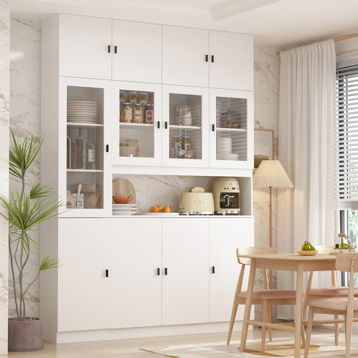 Tall Sideboard Cabinet with Hutch & Glass Doors, Versatile Storage Cabinet Set for Home Office, Living Room, White