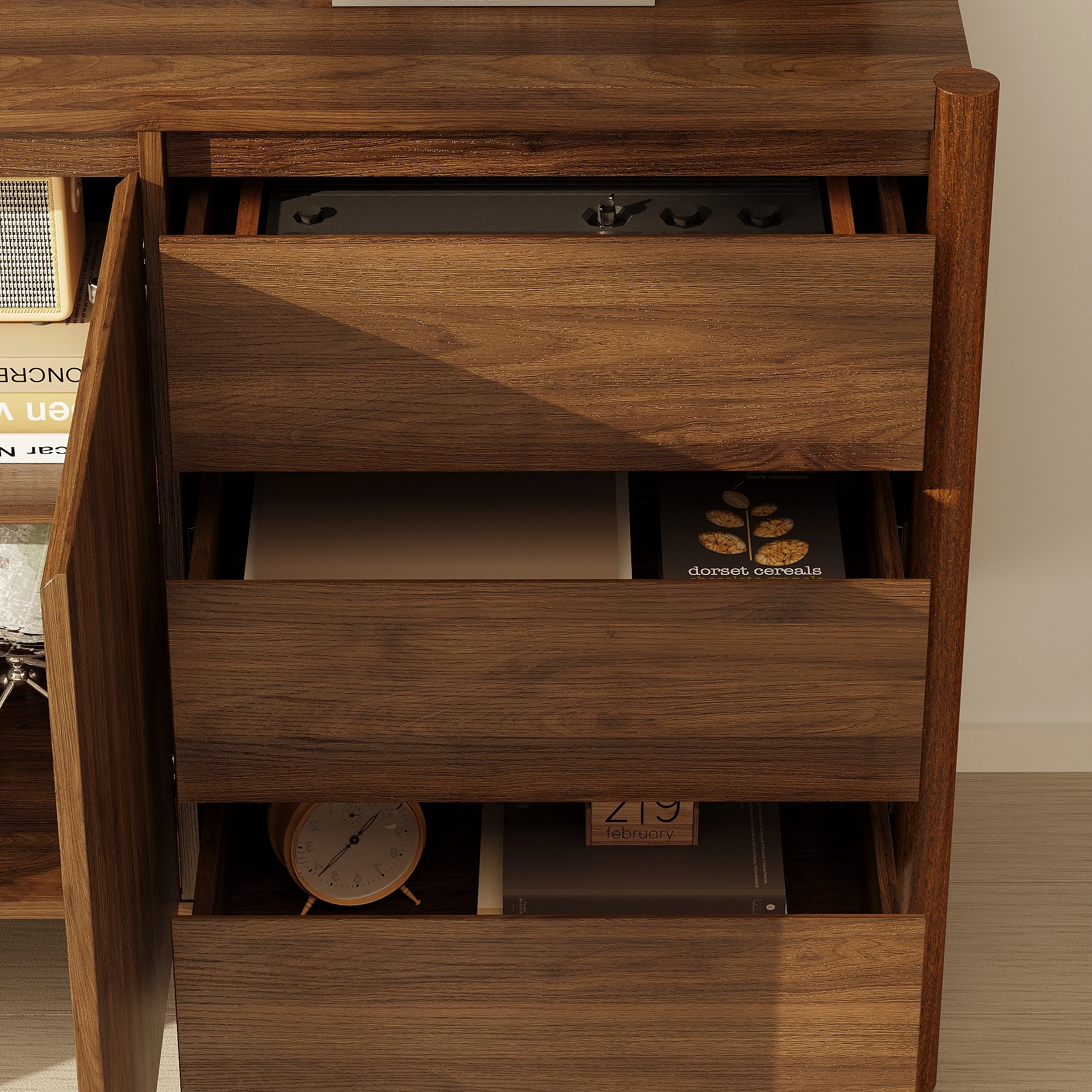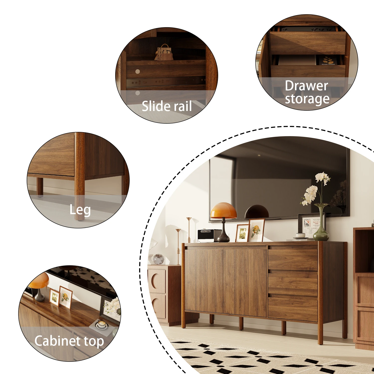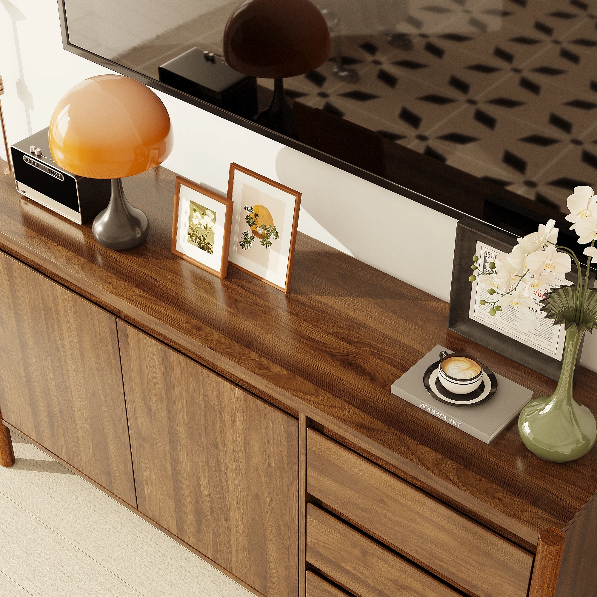 【Ample Storage】Equipped with 2 doors and 3 drawers, the TV cabinet offers substantial storage space. You can neatly store your DVDs, game controllers, and other media essentials in the compartments, keeping your living area tidy and making it convenient to find what you need.