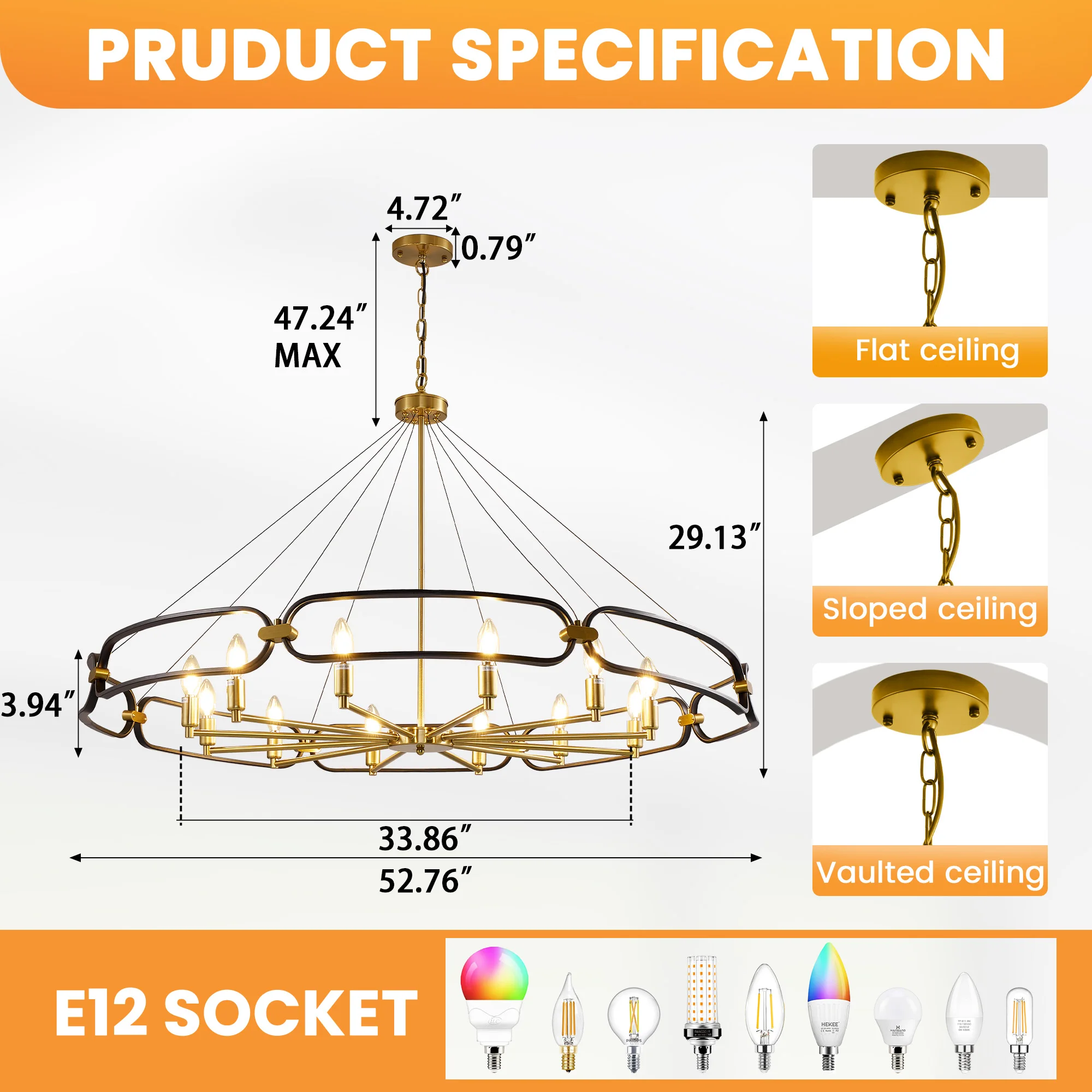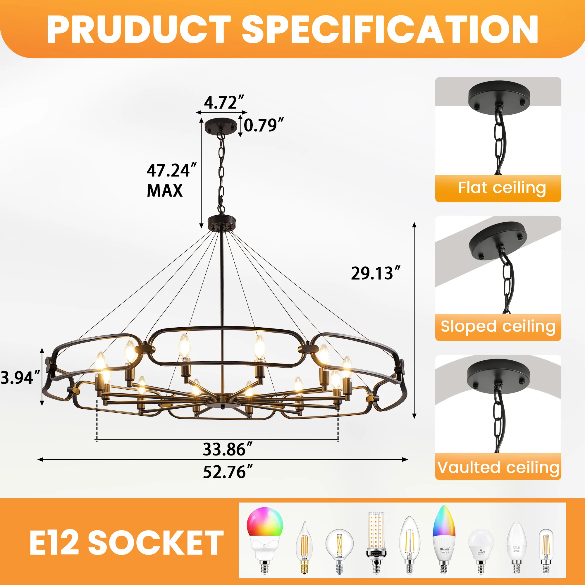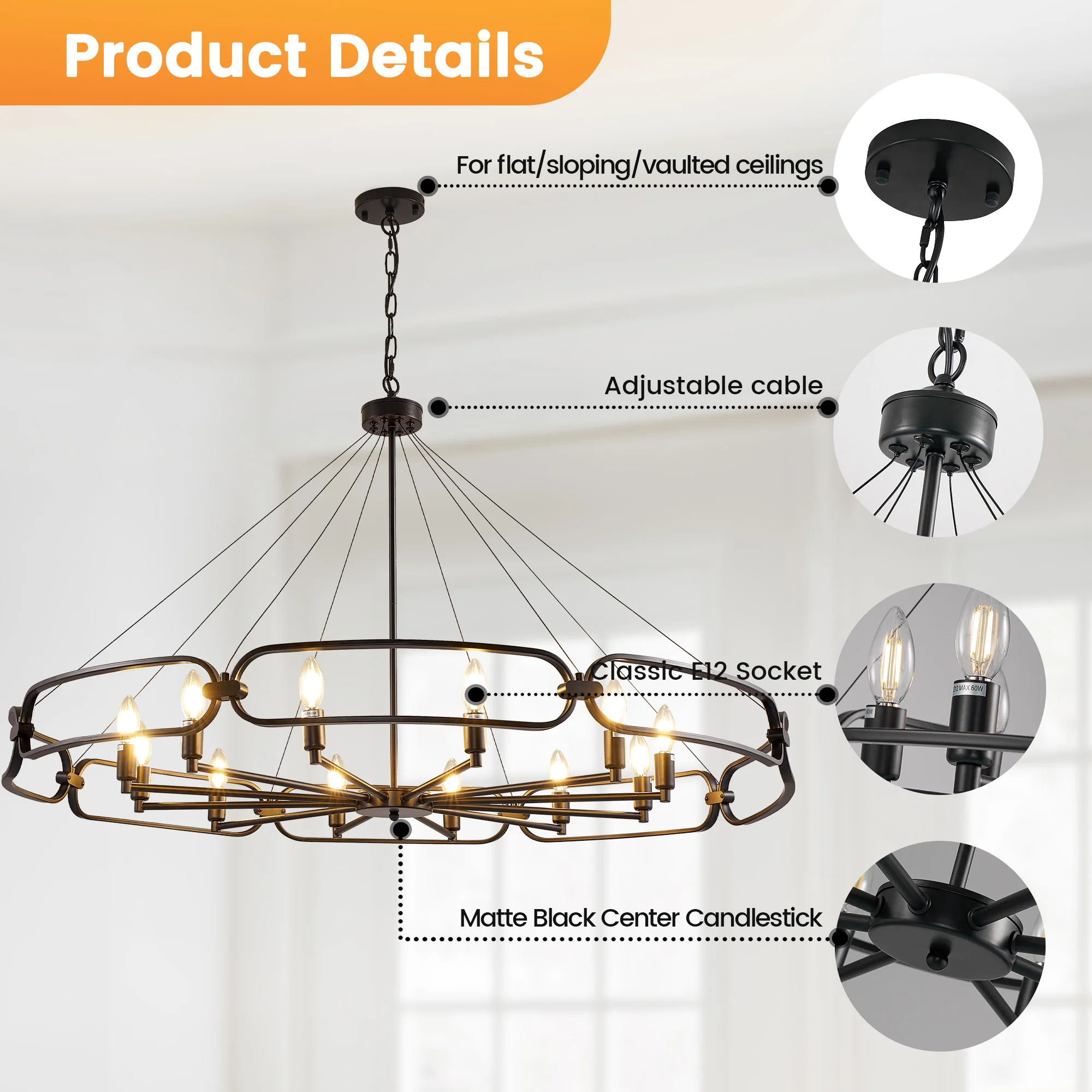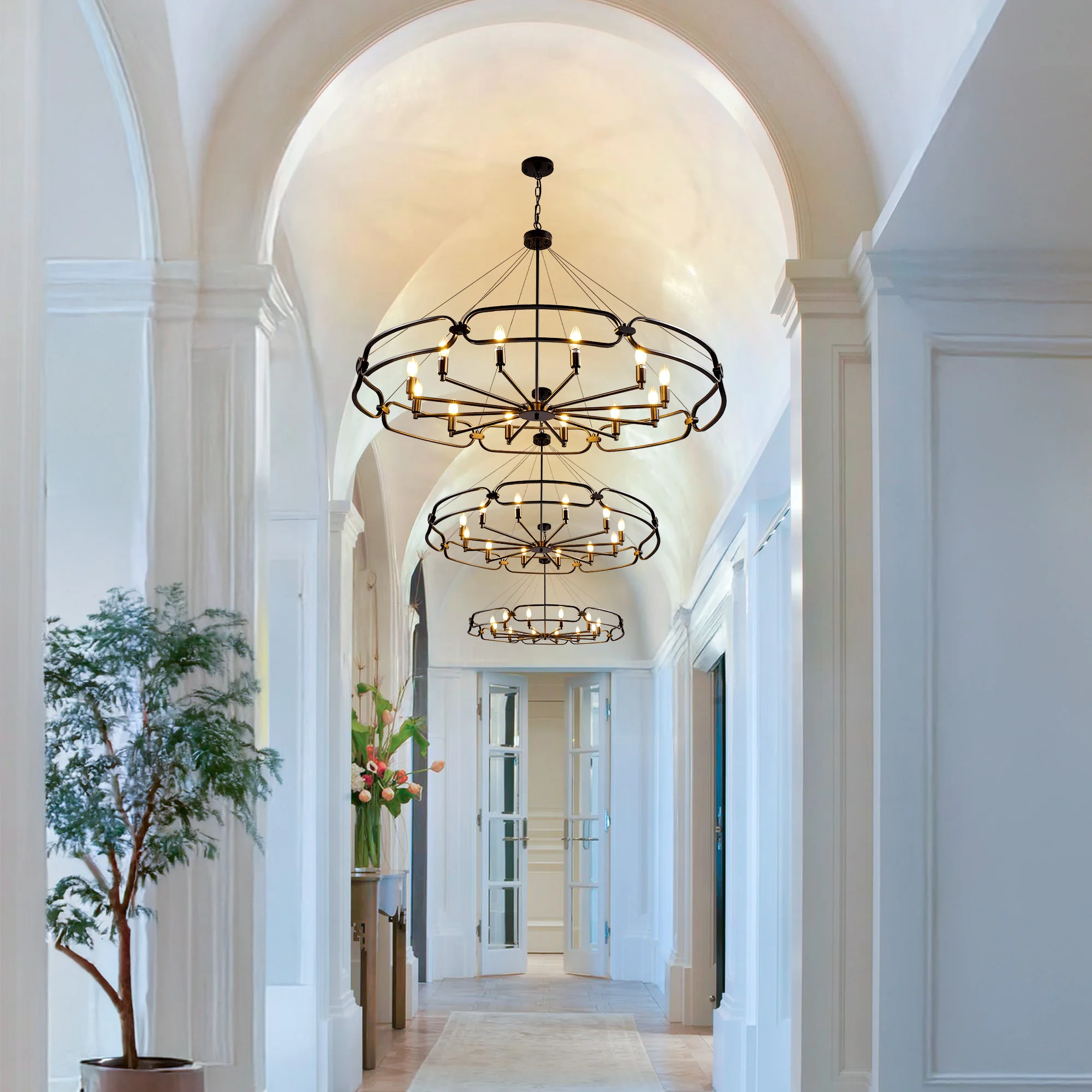 Vintage Chandelier Iron Round Led Ceiling Lighting Hanging Lamp Dining Living Room Cafe Restaurant Decoration Suspend Chandelier