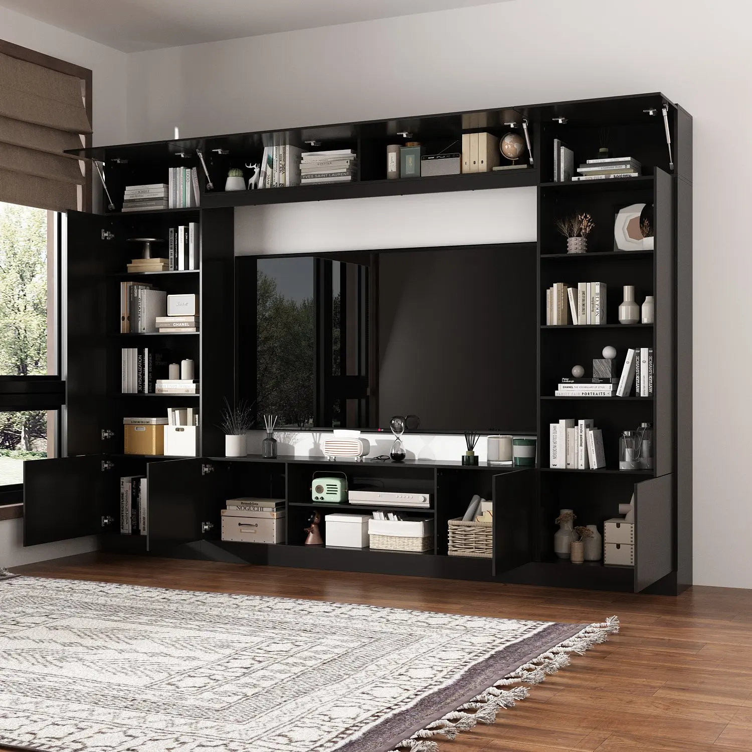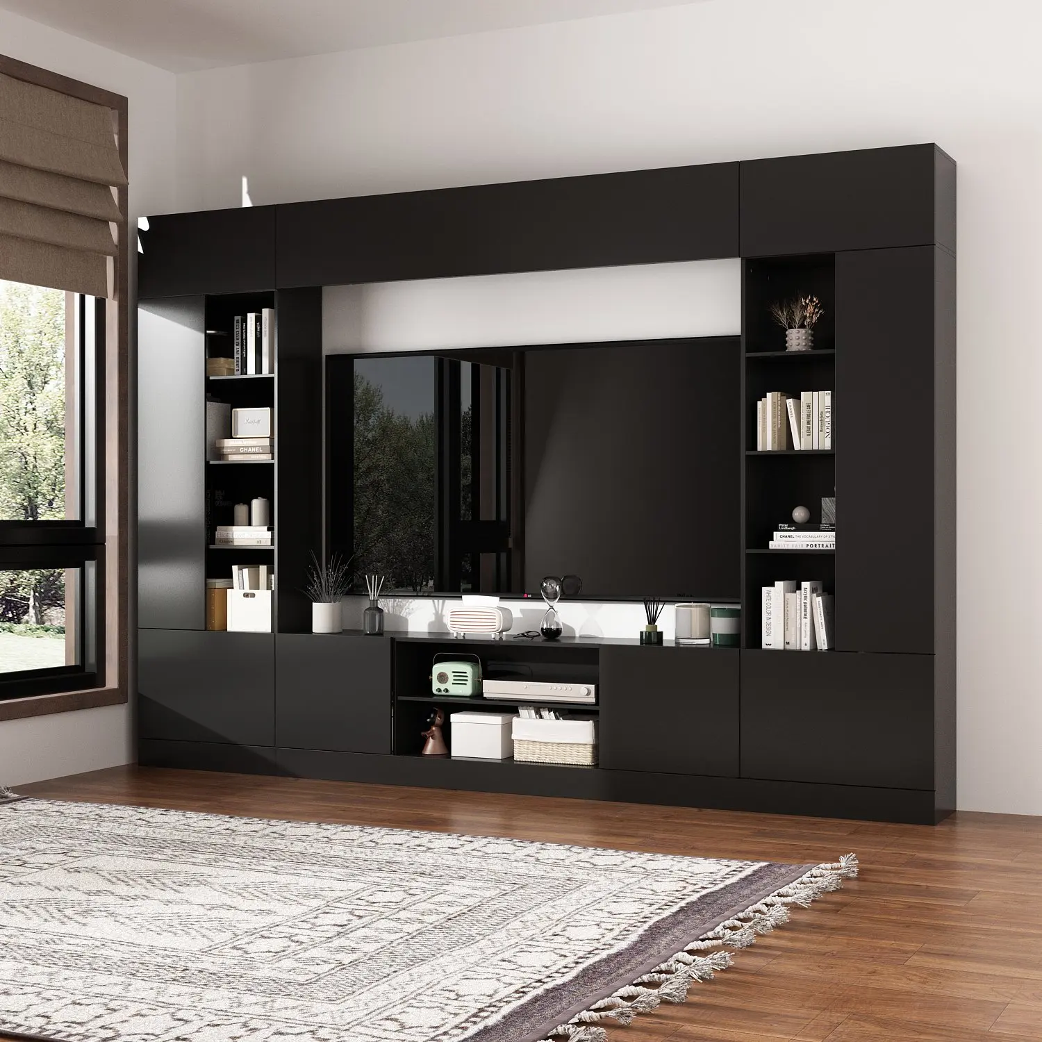 Adequate storage space: This TV cabinet comes with multiple shelves, providing ample storage space that is perfect for storing books, collectibles, and entertainment equipment.
