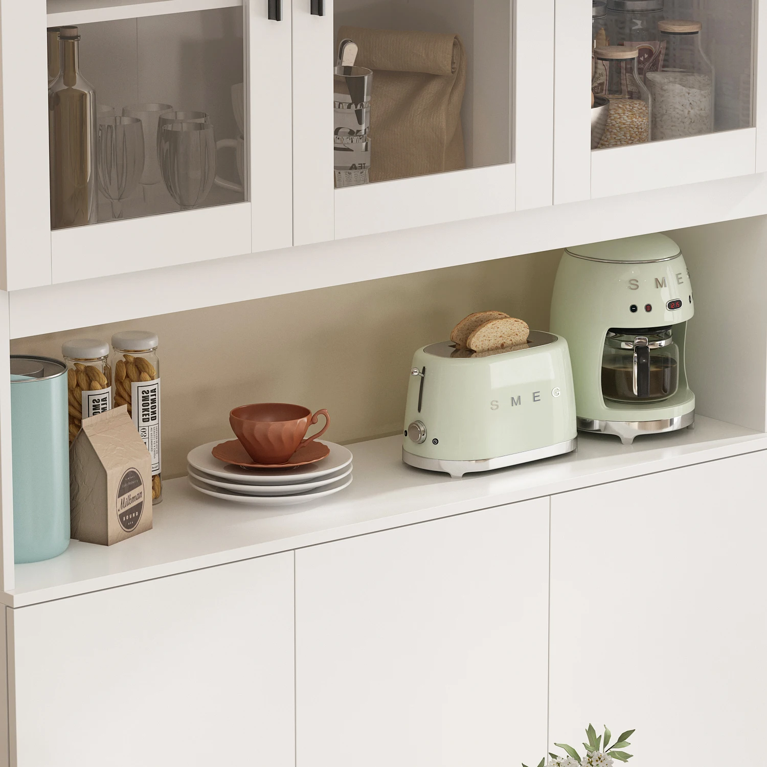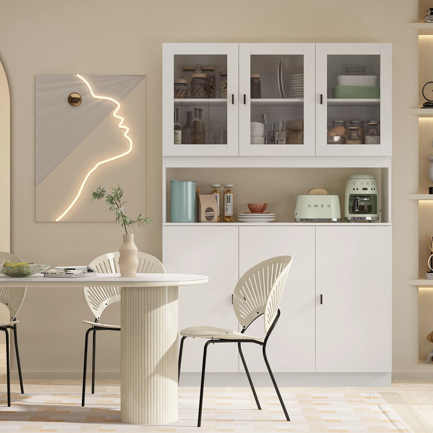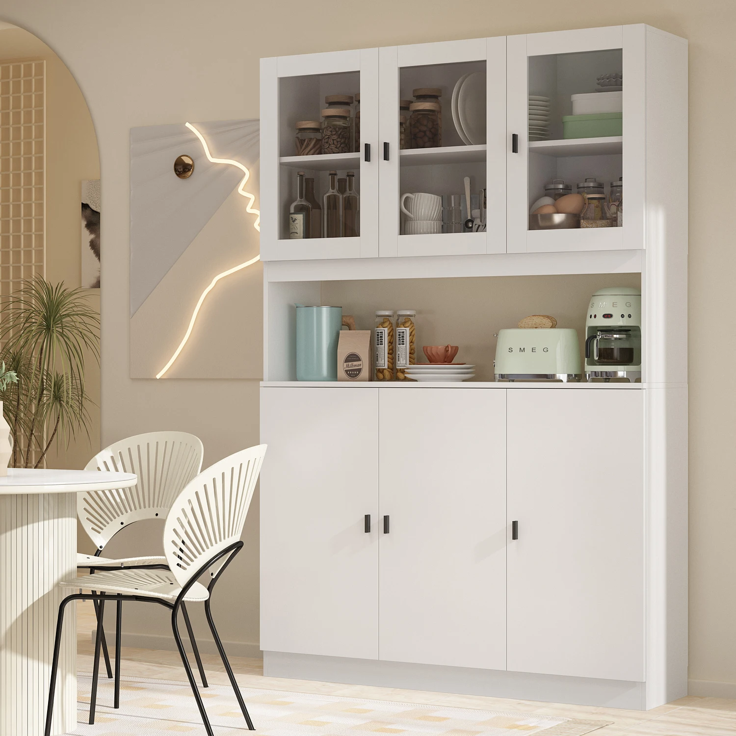 Looking for a functional and stylish storage piece? This tall cabinet with doors is perfect for your home. It has a minimalist white design with sleek metal handles, working as a versatile dining cabinet, sideboard, credenza, or part of tall sideboards and buffets that fits seamlessly in kitchens, dining rooms, or living areas. Made from durable PB material, it's built to last and safe for daily use. With adjustable shelves and multiple compartments behind glass and solid doors, there's ample space to organize dishes, jars, or decor—you can even customize shelf heights for tall items. The glass doors showcase your curated pieces while keeping dust away, adding a sophisticated touch. Whether you need kitchen storage or a chic living room accent, this cabinet combines style and practicality to keep your home neat and trendy.