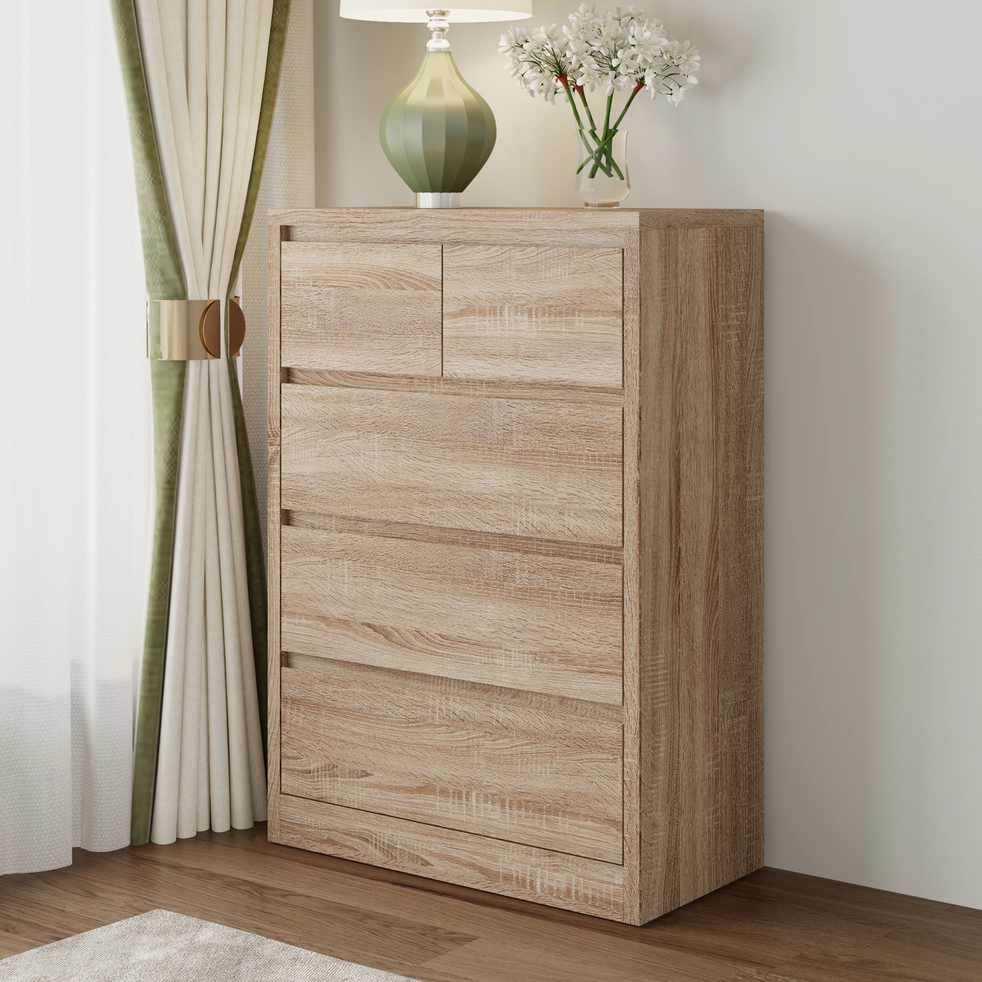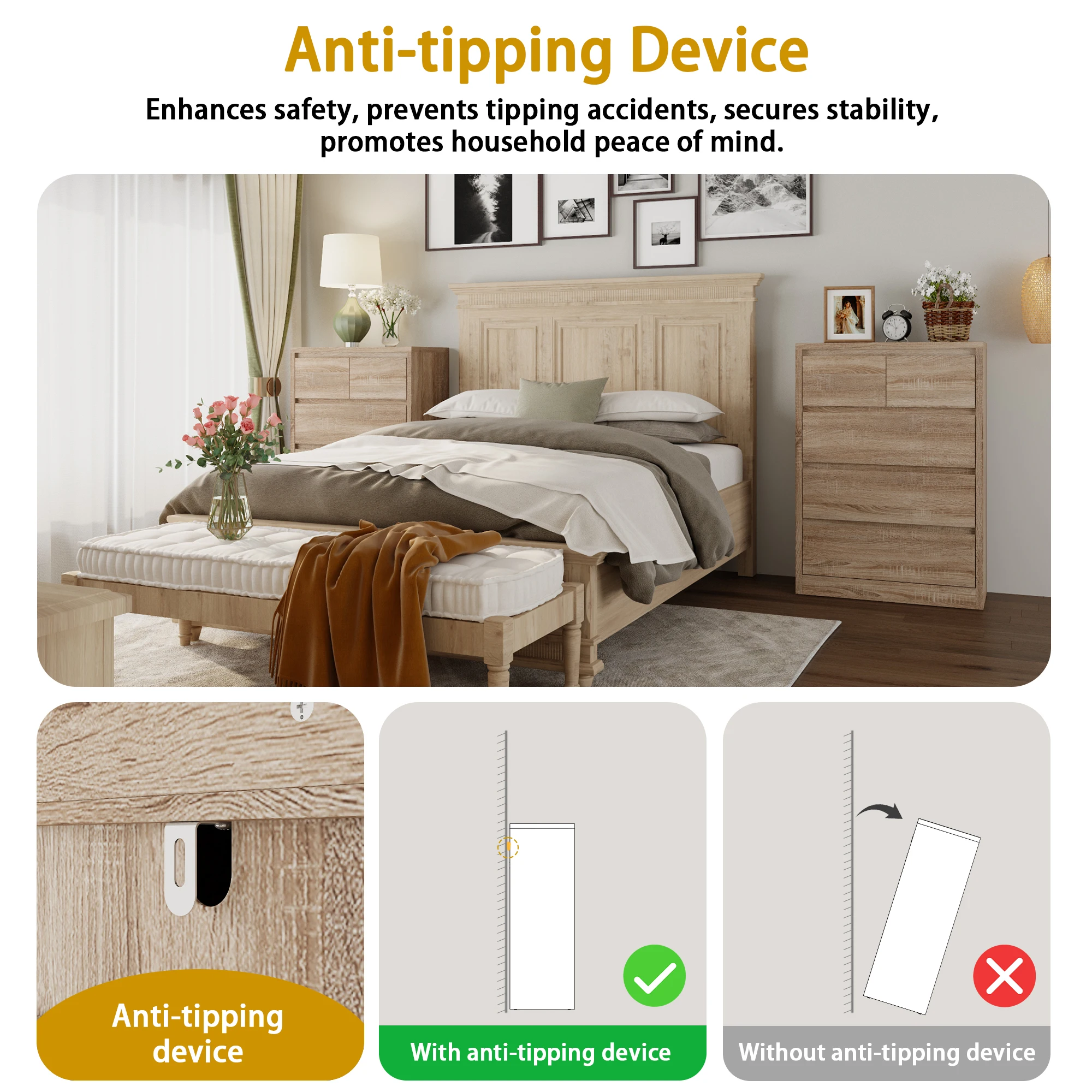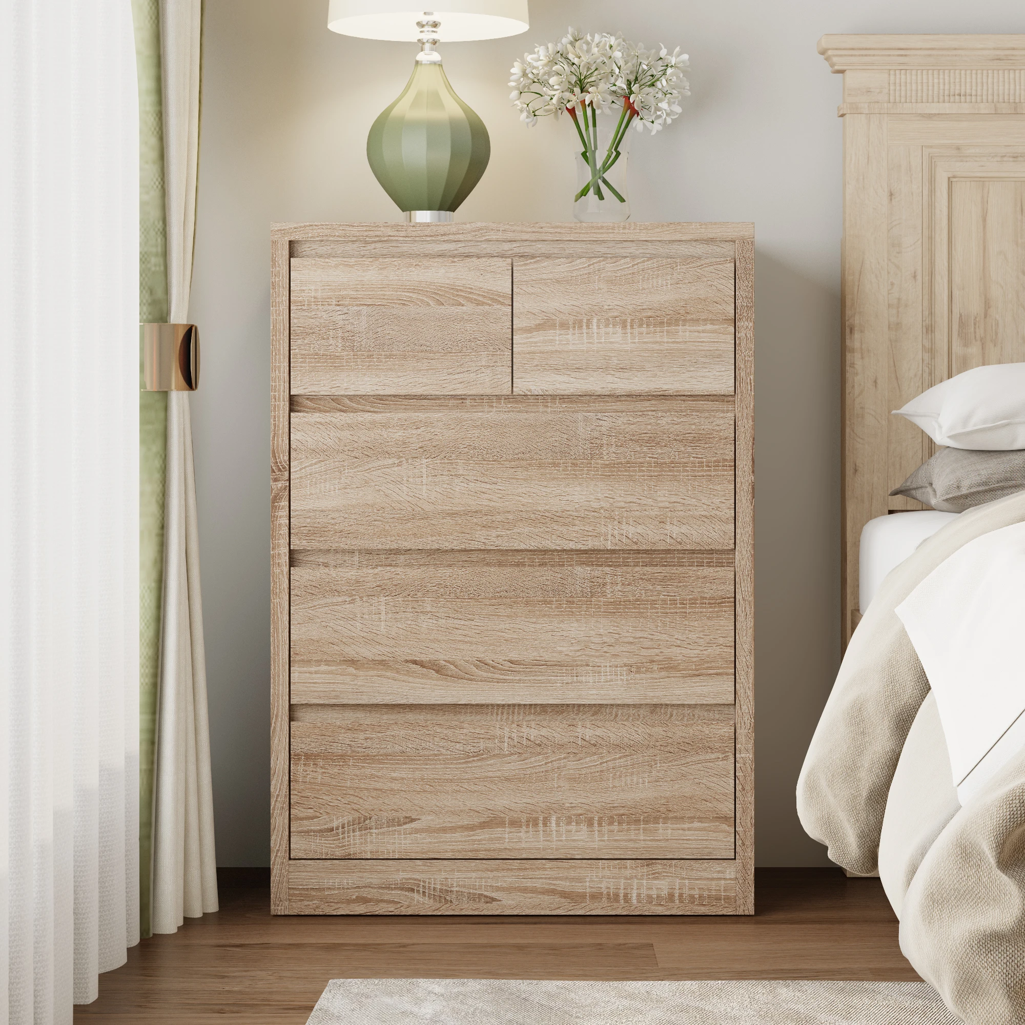【Ample Storage】Equipped with 5 drawers and several hidden drawers, this nightstand offers generous storage space. You can neatly organize all your bedside essentials such as pajamas, reading glasses, and chargers. It helps keep your bedside area clutter - free and makes it a breeze to find what you need.